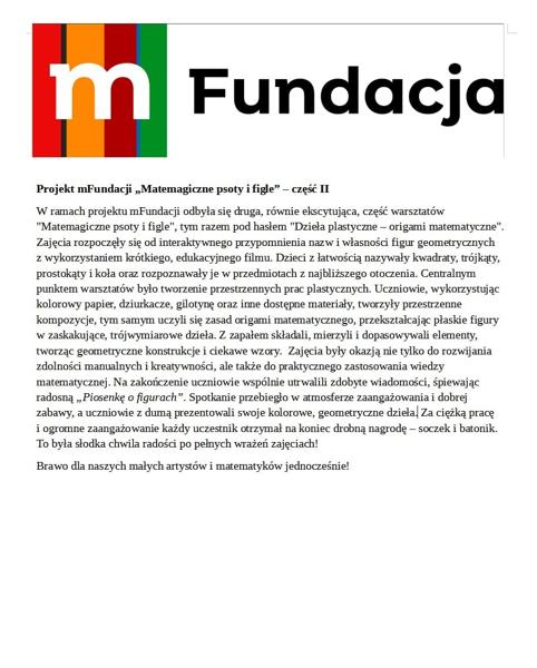 Projekt mFundacji „Matemagiczne psoty i figle” – część...