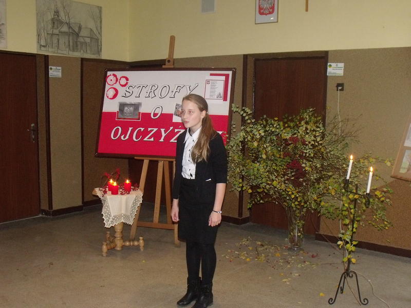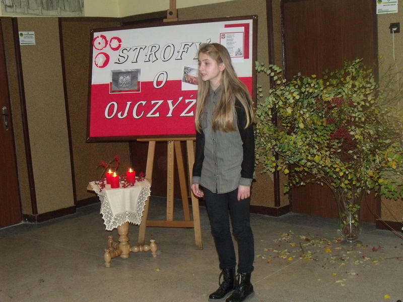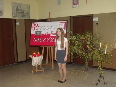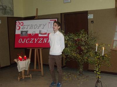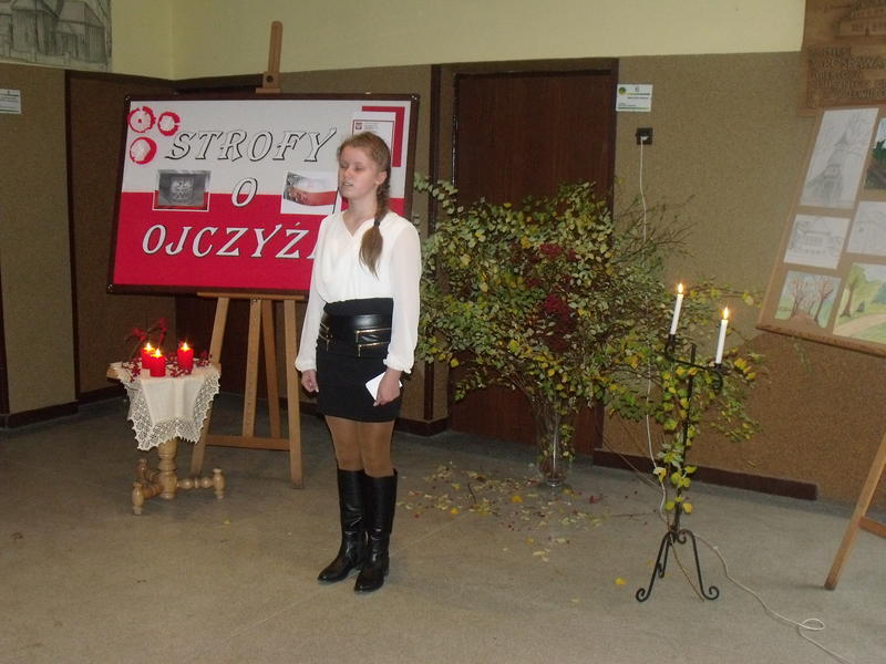 19 listopada 2014r. odbył się Szkolny Konkurs Recytatorski Poezji Patriotycznej pod hasłem „Strofy o ojczyźnie”.