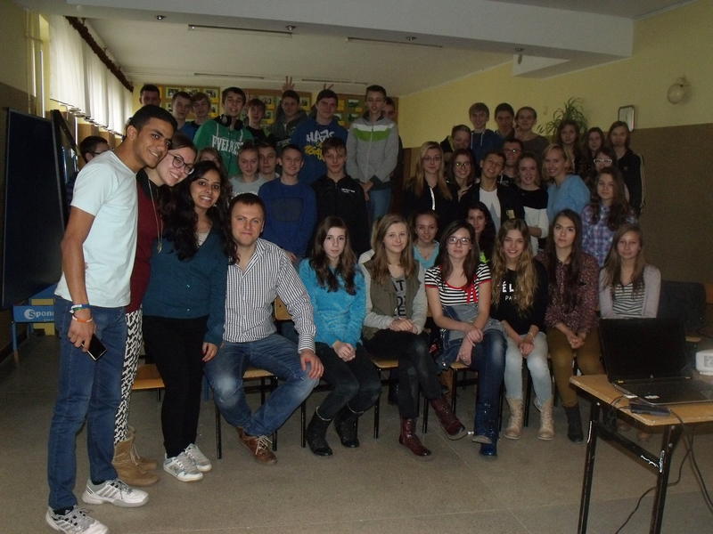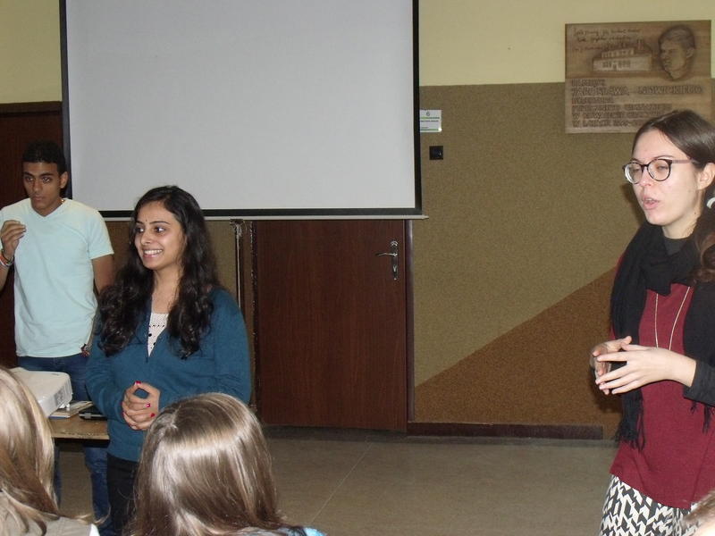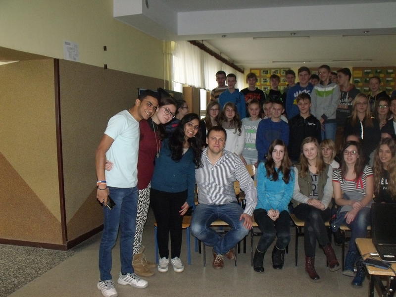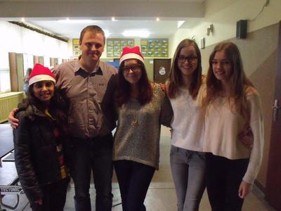 W dniach od 1 do 5 grudnia w naszej szkole w ramach realizowanego projektu gościnnie przebywali : Hinduska - Ayushi Chandani, Włoszka - Ludovica Piccinini i Egipcjanin - Karim Wasfi. Nasi przyjaciele z zagranicy zostali miło przyjęci przez koleżanki z klasy 3c Andżelikę Zaradzką i Martę Szygendę, które zapewniły im nocleg i świetną zabawę w godzinach pozalekcyjnych. Podczas lekcji języka angielskiego promowali zdrowy styl życia, prowadzili kampanię przeciwko spożywaniu alkoholu i paleniu papierosów. Spotkania z nimi były także okazją do podszlifowania języka angielskiego. Podczas ich obecności mogliśmy poznawać kulturę i historię ich krajów. W piątek odbyło się wspólne ubieranie choinki oraz wspólne gotowanie, dzięki czemu uczniowie mogli poznać włoskie smaki. Szczególne podziękowania dla Pana Przemysława Walerczyka, który nadzorował cały projekt i pomógł zaadaptować się naszym gościom.