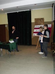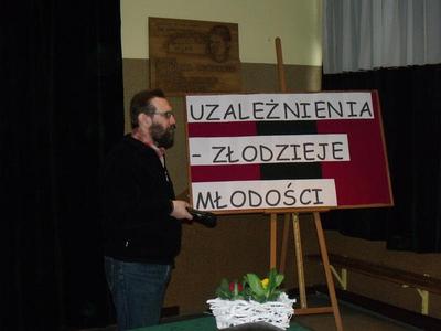 Dnia 30.03.2015 roku odbył się w naszej szkole wyjątkowy dzień. Zapoczątkowaliśmy go wspólną modlitwą w kościele z okazji pierwszego dnia rekolekcji. Następnie, po skończonej mszy, spotkaliśmy się z niezwykłym gościem, panem Józefem Cybulskim, członkiem klubu AA. Opowiadział on nam o swojej drodze przez alkoholizm, walce z uzależnieniami. Uczniowie słuchali go z zaciekawieniem i uwagą. Gość odmienił na pewno spojrzenie na świat wielu naszych kolegów i koleżanek. Następnie przyszedł czas na Światowy Dzień Zdrowia. Obejrzeliśmy na holu interesującą prezentację odnośnie chorób i możliwości dbania o zdrowie. Dowiedzieliśmy się ciekawych faktów odnośnie wartośćiowych produktów. Lekcja zdrowia była niezwykle pożyteczna. (Autor: Aleksandra Baśkiewicz)