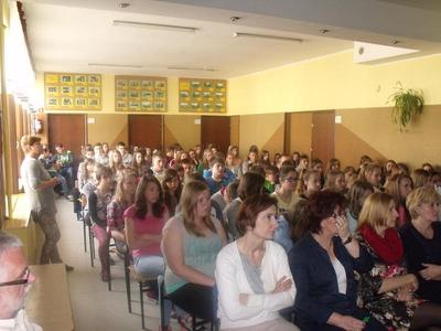 Po przerwie wszyscy uczniowie i nauczyciele obejrzeli prezentację multimedialną,