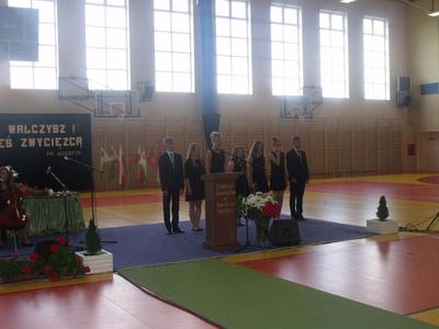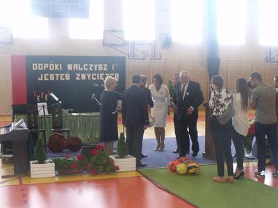 Hala znajduje się przy budynku gimnazjum. Przystosowana jest do gry w koszykówkę, siatkówkę, piłkę ręczną, piłkę nożną i tenisa ziemnego. Oprócz płyty boiska składają się na nią również szatnie, zaplecze sanitarne, pokój trenera i przechowalnia sprzętu sportowego. Dla Wójta Grażyny Kazuś budowa pierwszego kompleksowego obiektu w gminie była priorytetem. To wydarzenie uświetnili uczniowie prezentując niesamowity program artystyczny. Były wiersze, piosenki i pokaz taneczny.