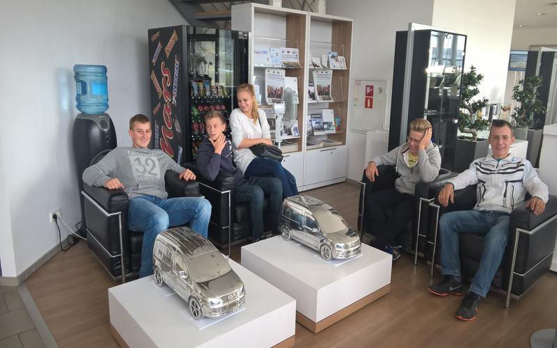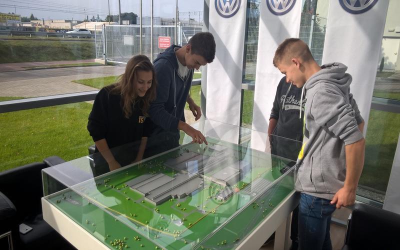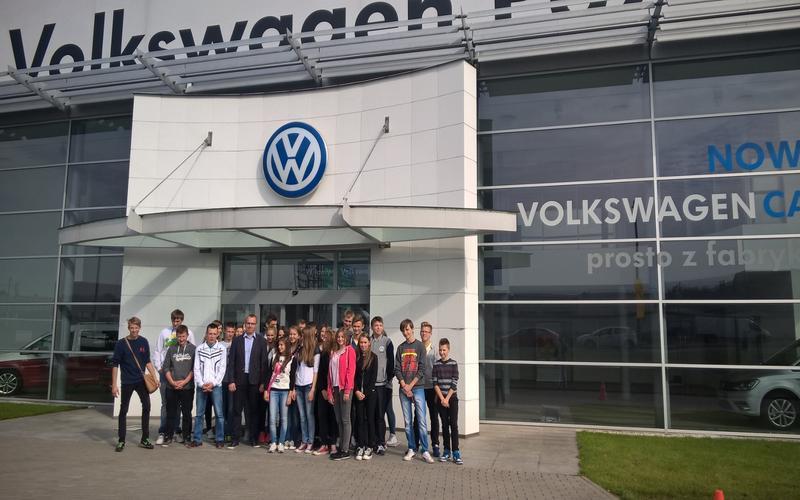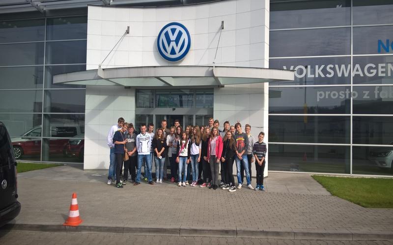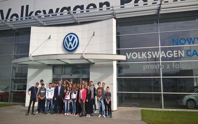 Wczorajszy dzień upłynął uczniom klas trzecich kowalewskiego gimnazjum pod znakiem wielkich emocji. Mieli oni bowiem możlwiość zwiedzania zakładu Volkswagen Poznań, gdzie poznali cały proces produkcji samochodów tej marki. Pierwszym punktem była spawalnia, gdzie pracownicy i maszyny łączyły płytę podłogową aut z innymi elementami karoseri. Nastepny proces, którego niestety nie mogliśmy obserwować to lakiernia. Po lakierowaniu wszystkie auta trafiły na linię montażu, co naszych uczniów zaciekawiło najbardziej, gdyż to tu auta otrzymywały ostateczny wygląd. Serdecznie dziękujemy p. Jerzemu Włodarczykowi za możliwość poznania procesu produkcji z bliska.