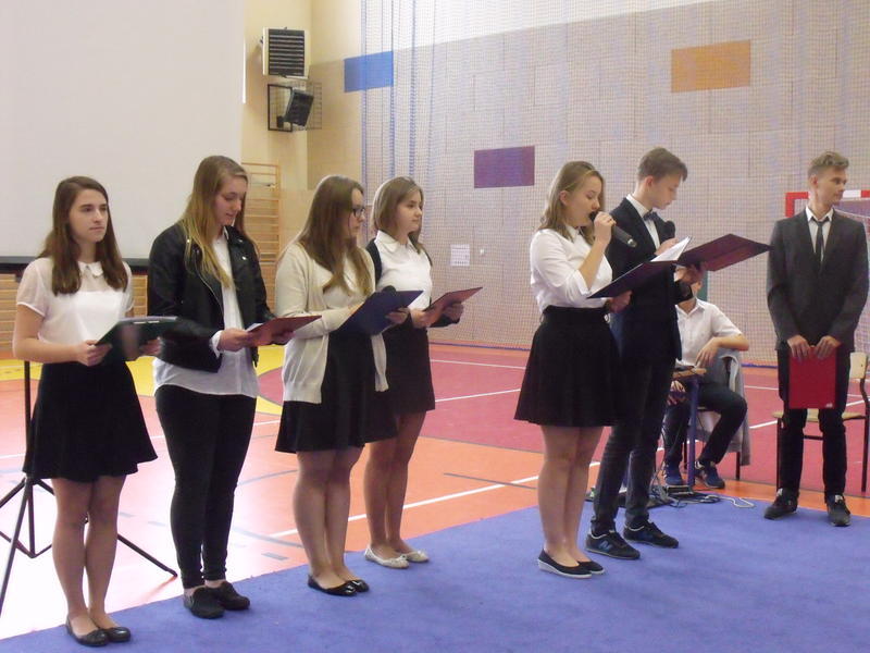 ślubowania wygłosili uczniowie trzech klas pierwszych: I A (wychowawca- p. Piotr