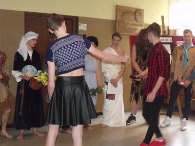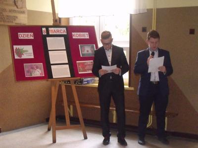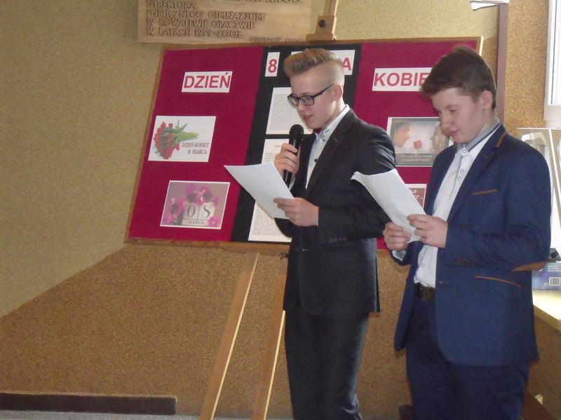 8 marca w naszym gimnazjum odbyła się uroczystość z okazji Dnia Kobiet. Chłopcy z klas trzecich przedstawiali krótkie scenki pt.: Jak obchodzono Dzień Kobiet w każdej z epok. Przedstawienie wprawiło wszystkich w ogromny podziw i radość. Wszyscy bawili się świetnie.