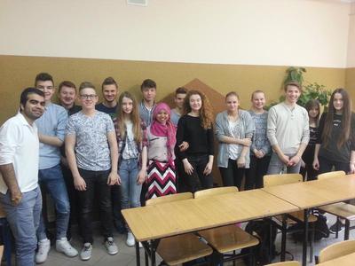 Nasza szkoła już piąty raz wzięła udział w progmramie MAKE A STEP, organizowanym przez AIESEC Polska. Nasi goście - Yulia Sasmiranty (studentka ekonomii z Indonezji) oraz Soroosh Karimi (student z Iranu) - prowadzili przez tydzień zajęcia z uczniami naszego gimnazjum. Opowiadali nam o swoich krajach i kulturach, w których żyją. Zajęcia te były bardzo interesujące, a zarazem dały możliwość poszerzenia horyzontów. Spotkania ze studentami możliwe były także po godzinach lekcyjnych. Mamy nadzieję, że nasi goście zapamiętają nas jak najlepiej. Dziękujemy za ciekawie spędzony czas na lekcjach, jak i po za nimi. Oczekujemy już także kolejnej wymiany. Z tej pozostaną nam miłe wspomnienia oraz zdjęcia..