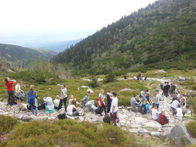 W zeszłym tygodniu kowalewska młodzież udała się do Karpacza. Uczniowie klas pierwszych i drugich mieli okazję poznać topografię Karkonoszy i zdobyć Śnieżkę. Podejście okazało się męczące, ale niemal cała grupa dotarła na sam szczyt. Podczas wypadu nie zabrakło także innych atrakcji, takich jak kąpiel w parku wodnym przy hotelu Gołębiewski, wycieczka do Dzikiego Wodospadu, zwiedzanie świątyni Wang oraz zamku Książ we Wałbrzychu. Mamy nadzieję, że w najbliższym czasie uda się zorganizować wycieczkę w nieco wyższe Tatry.