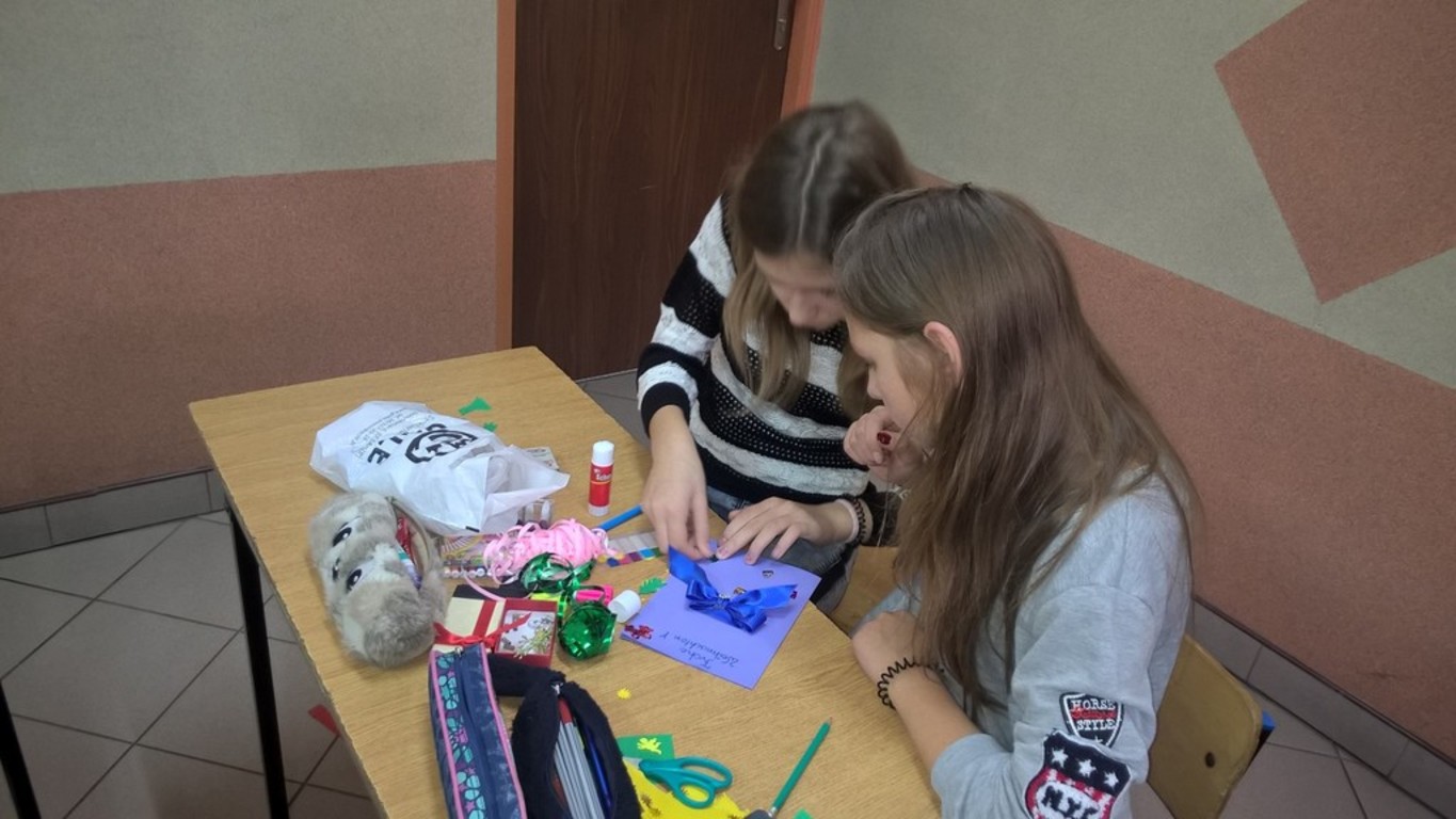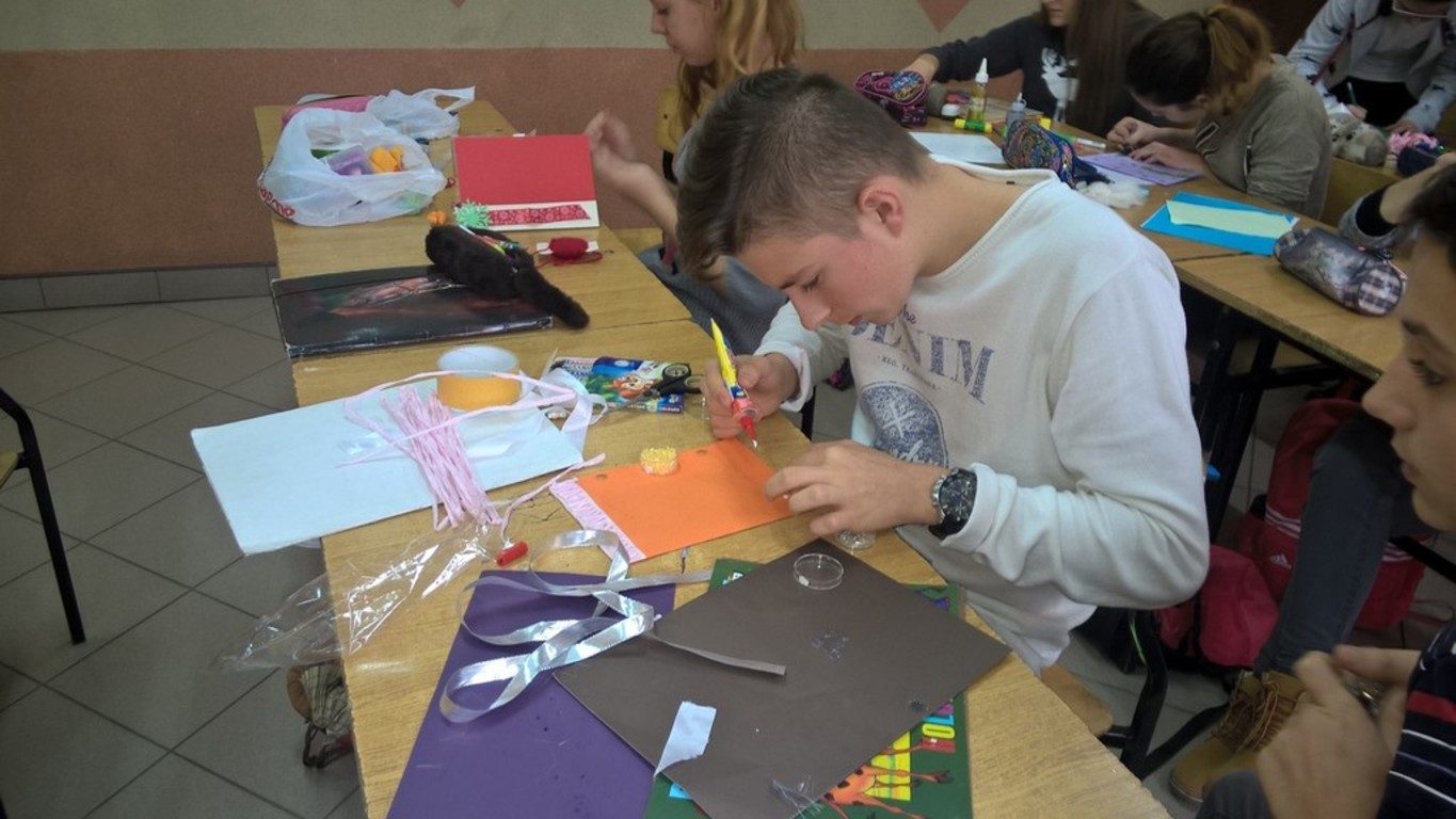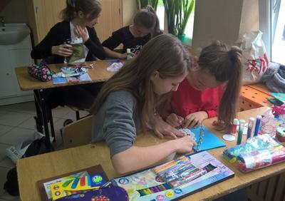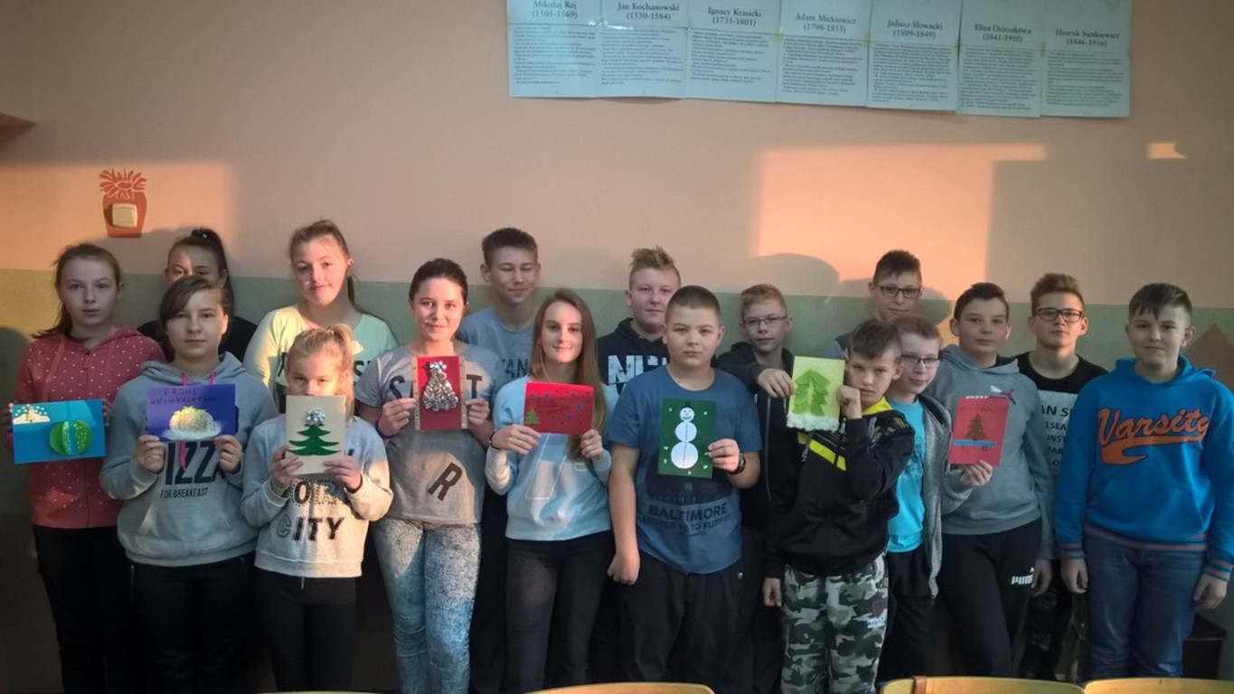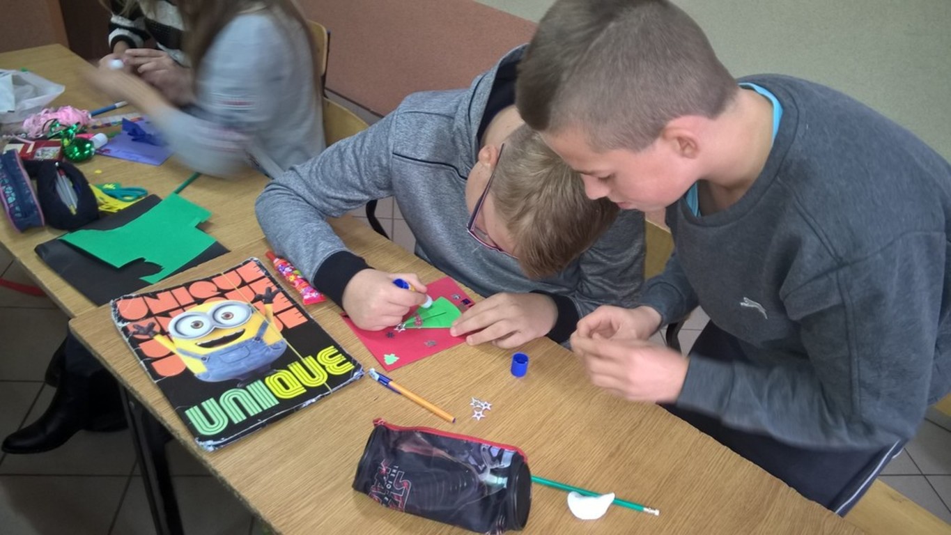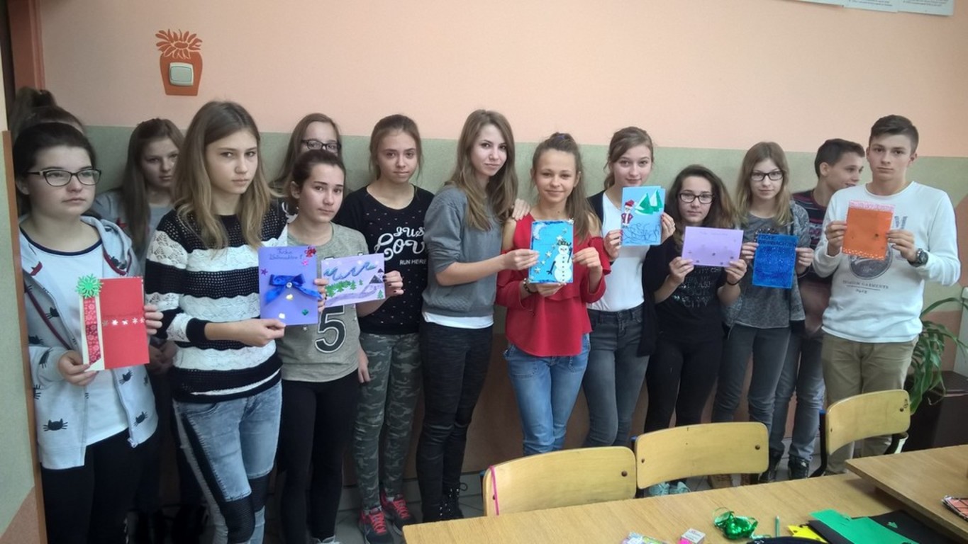 Uczniowie wykonali kartki świąteczne, które zostały wysłane do Włoch oraz otrzymali kartki