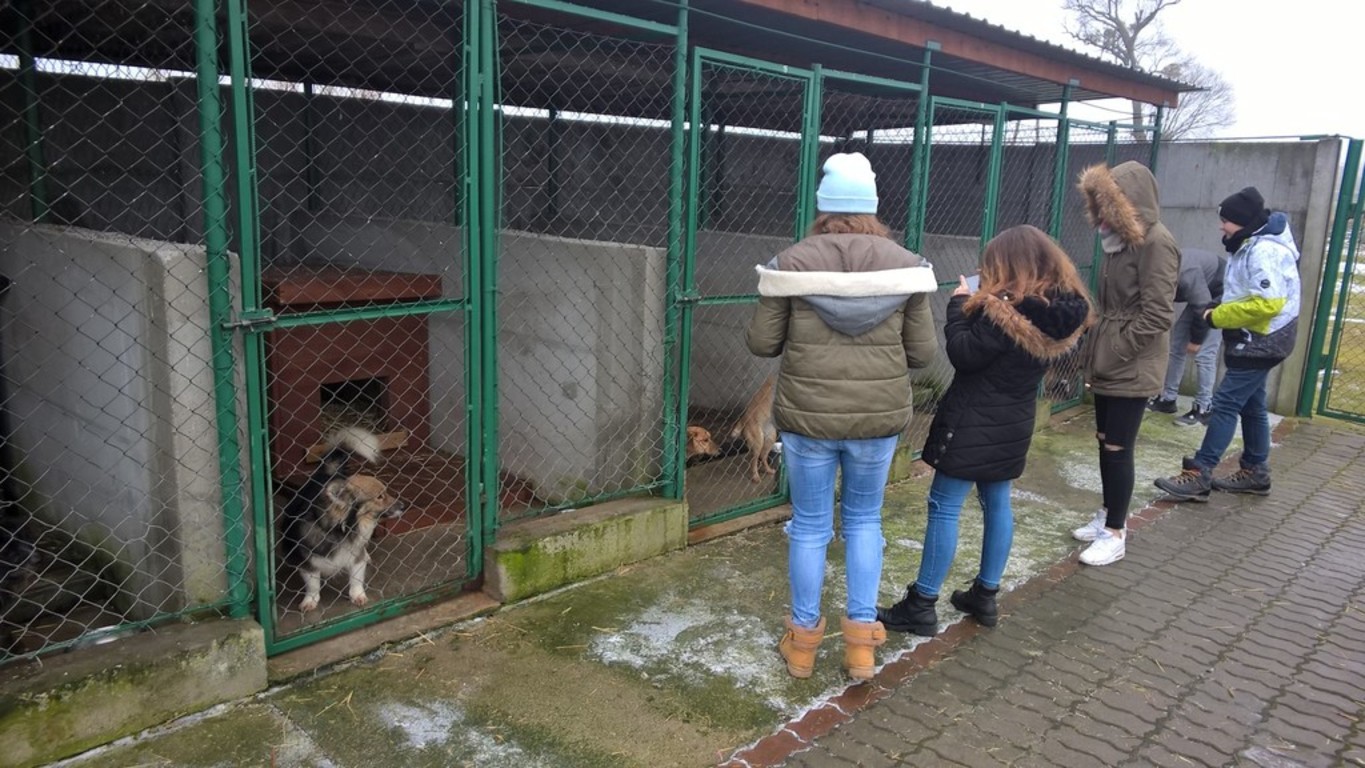 p. Bartoszem Kazuś. Wizyta była ukoronowaniem akcji zbierania karmy dla podopiecznych. Młodzież przekazała zgromadzone dary, zapoznała się z funkcjonowaniem schroniska oraz uczestniczyła w spotkaniu z panem weterynarzem. Pracownicy oraz czworonożni przyjaciele byli nam bardzo wdzięczni za okazaną pomoc i serce.