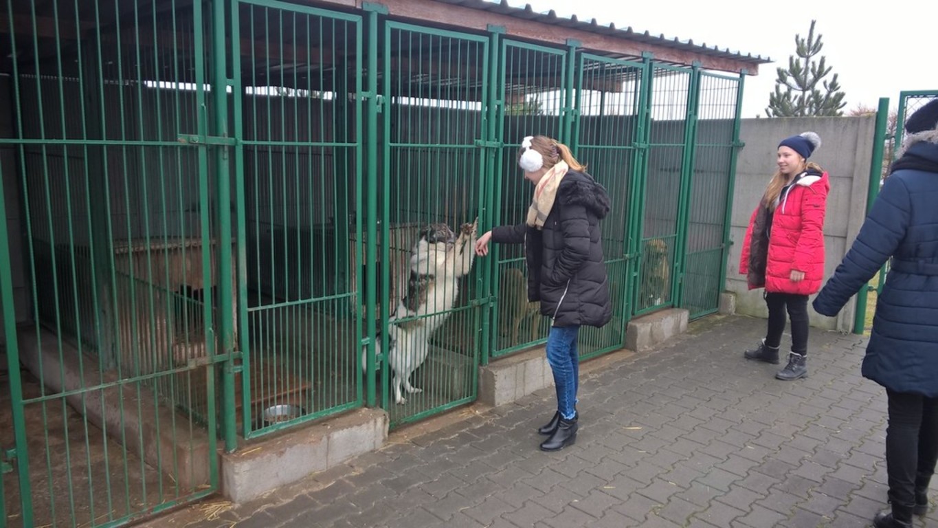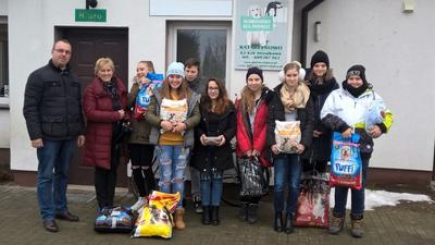 i postanowili wesprzeć schronisko w Katarzynowie. 25 stycznia 2017r. z wizytą do schroniska pojechali przedstawiciele naszej szkoły wraz z opiekunami p. Dorotą Szelążek-Blejwas oraz