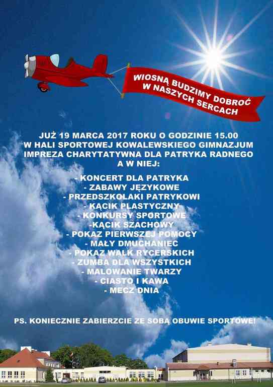 19 marca gramy dla Patryka! Zdjęcia Zobacz również Egzaminy gimnazjalne - 19,20,21 kwietnia 2017r. Gminny Turniej Wiedzy Pożarniczej "Młodzież Zapobiega... Rekrutacja do szkół ponadgimnazjalnych na rok... 19 marca gramy dla Patryka! Pierwszoklasiści w MDK w Koninie Obchody Dnia Kobiet w naszym gimnazjum 10 marca 2017 Aktualności Wydrukuj Udostępnij Wyświetlono: 844