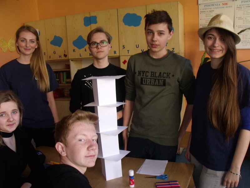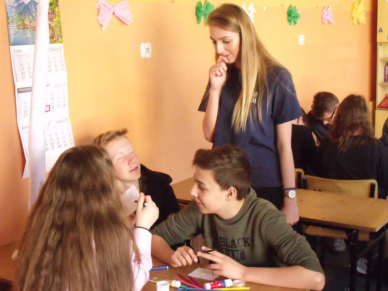 W piątek 24 marca odwiedzili nas wyjątkowi goście: studenci Uniwersytetu im. Adama Mickiewicza w Poznaniu działający przy projekcie AMUL (Aktywny Mały Uniwersytet Latający) pod opieką naukową Pani Profesor dr hab. Anny Izabeli Brzezińskiej- specjalistki w dziedzinie psychologicznych podstaw edukacji, nie tylko dzieci, ale również rodziców i nauczycieli. Nadrzędnym celem programu jest propagowanie nauki interaktywnej, w dynamicznej i ciekawej formie, zaś szczegółowym- ukazanie możliwości, jaką daje współpraca w grupie, ale też odkrywanie własnej kreatywności. Prężna grupa studentów (15 osób) wtopiła się w społeczność uczniowską, organizując warsztaty, podczas których uczniowie musieli się wykazać pomysłowością i umiejętnością komunikacji w grupie. W trakcie zajęć wykonywano papierowe budowle, tworzono bajki, ilustracje, przysłowia.