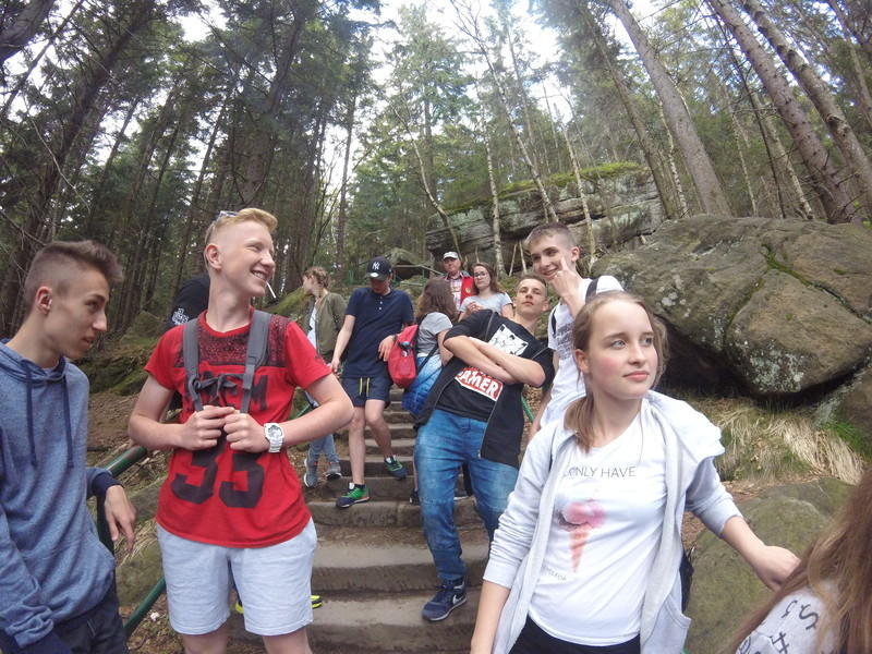 W dniach 15-17 maja odbyła się wycieczka do Kotliny Kłodzkiej, w której brało udział 40 uczniów naszej szkoły. Podczas wypadu, już pierwszego dnia mieliśmy okazję aktywnie spędzić czas podziwiając piękno Gór Stołowych, z najwyższym ich szczytem - Szczelińcem Wielkim. Drugiego dnia udaliśmy się do Złotego Stoku, gdzie zeszliśmy kilkadziesiąt metrów pod ziemię, szlakami dawnych szybów, którymi niegdyś wydobywano złoto. Nieopodal znajdowała się średniowieczna osada górnicza – tam dowiedzieliśmy się jak np. rozpoznać żyłę złota w skale i jak je pozyskać. Wieczorem udaliśmy się na spacer ulicami Kłodzka, a po powrocie nasza grupa integrowała się przy wspólnym ognisku, słuchając muzyki i skwierczących w ogniu kiełbasek. Na trzeci dzień pora była wracać do domu, jednak po drodze zatrzymaliśmy się we wrocławskim zoo by bliżej przyjrzeć się faunie obecnej w różnych zakątkach naszej planety. W przyszłym roku uczniowie ponownie pragną udać się na wycieczkę - tym razem ich marzeniem jest wypad w Bieszczady.