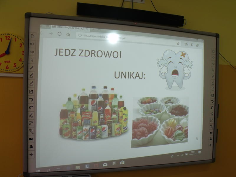 W dniu 20 marca br. szkoła wzięła udział w wydarzeniu pod patronatem honorowym Wojewody Wielkopolskiego, pana Zbigniewa Hoffmanna, przy współpracy Wydziału Zdrowia Wielkopolskiego Urzędu Wojewódzkiego w Poznaniu, kuratorium Oświaty w Poznaniu, Konsultanta Wojewódzkiego w dziedzinie stomatologii dziecięcej, pani dr n. med. Anety Olszewskiej oraz Wielkopolskiego Oddziału Wojewódzkiego NFZ w Poznaniu. Celem akcji jest przeciwdziałanie problemowi próchnicy zębów wśród dzieci w wieku szkolnym oraz eliminowanie zagrożeń poprzez edukację najmłodszych grup uczniów. Wybraną formą edukacji dla najmłodszych uczniów była prezentacja multimedialna z aktywnym udziałem odbiorców. Prezentację przeprowadziła pielęgniarka szkolna, pani Dorota Kowalska. Możliwość oddziaływania na świadomość najmłodszych kreuje prozdrowotne postawy oraz zapobiega tej powszechnej i niebezpiecznej dla zdrowia chorobie.