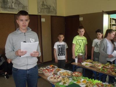Dnia 24.04.18 r, w naszej szkole obchodziliśmy ,,Dzień Ziemi". Z tej okazji uczniowie przygotowali różne potrawy z darów Ziemi:kanapki, ciasto, babeczki, szaszłyki owocowe oraz różne sałatki. Wszyscy uczniowie wykazali się dużą pomysłowością. Pierwsze miejsce zdobyła klasa IIB, drugie miejsce klasa I i VII, a trzecie miejsce klasa IIIB