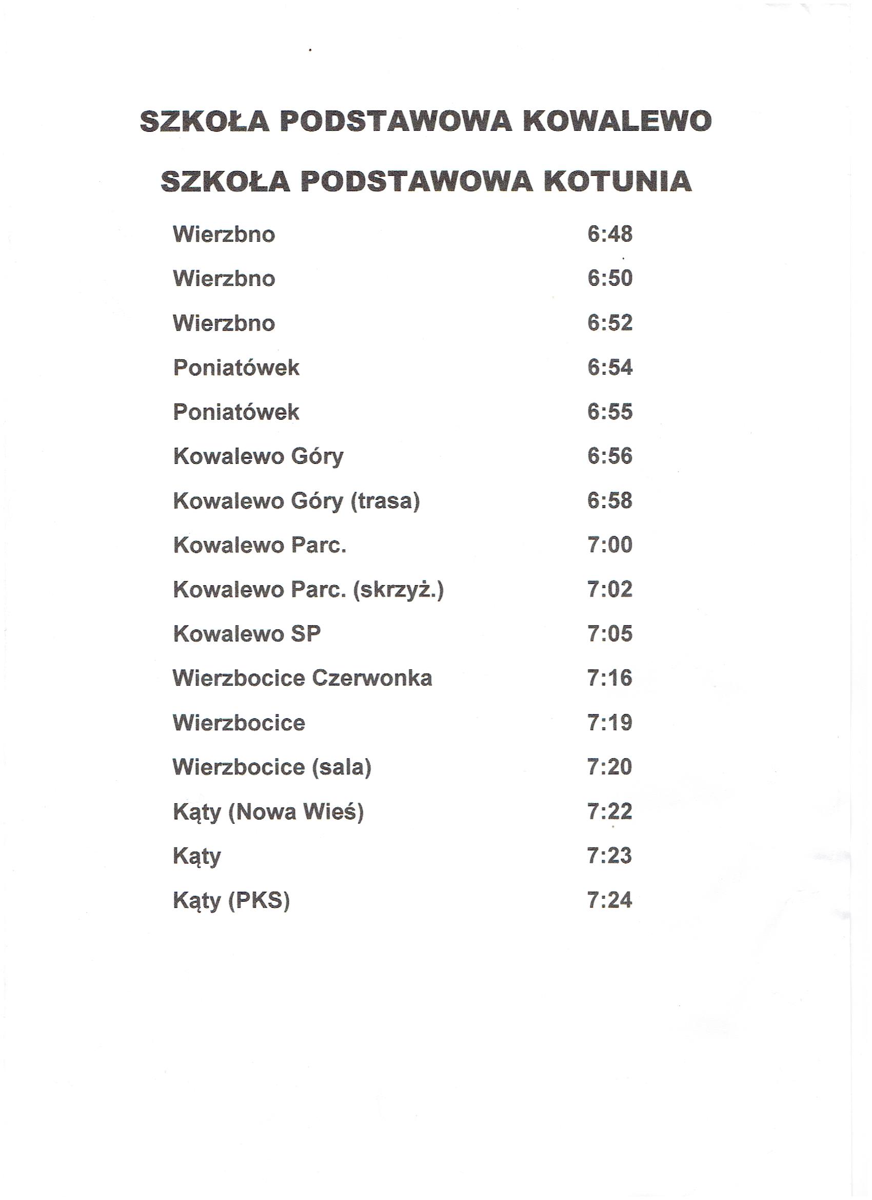 Dowozy do szkoły od 2 września 2019 Poniżej przedstawiamy plan dowozów do Szkoły Podstawowej w Kowalewie Opactwie od 2 września 2019. Zjedź na dół strony by pobrać pliki. Zdjęcia Załączniki Szkoła Kowalewo i Kotunia [10.72 kB] Szkoła Kowalewo i Kotunia 2 [170.04 kB] Zobacz również Bezpieczne wakacje Coś się kończy, coś się zaczyna... czyli zakończenie... Uroczyste rozpoczęcie roku szkolnego 2019/2020... Dowozy do szkoły od 2 września 2019 ROZPOCZĘCIE ROKU SZKOLNEGO 2019/2020 Dobrowolne ubezpieczenie NWW dzieci 30 sierpnia 2019 Aktualności Wydrukuj Udostępnij Wyświetlono: 2169