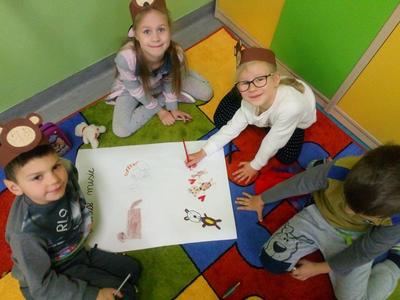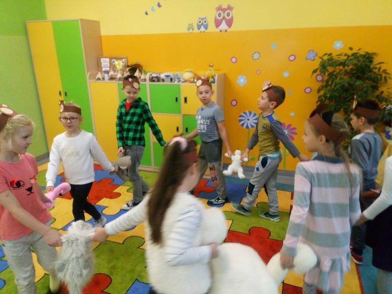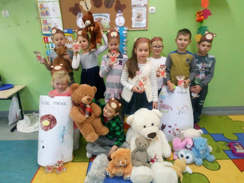 Z tej okazji w klasie I zagościły ulubione misie dzieci. Każdy uczeń nosił z dumą misiową opaskę, którą sam wcześniej wykonał. Pierwszoklasiści przedstawili swoje pluszowe zabawki i opowiedzieli zwiane z nimi historie. Następnie dzieci zaprosiły swoje misie do wspólnego misiowego tańca przy muzyce „Jadą, jadą misie” oraz zaśpiewały piosenkę „Mój miś”. Uczniowie w grupach wykonywali plakat pt. „Nasze misie”, gdzie malowali swoje wymarzone pluszaki. Na koniec dzieci wykonały misiowe pudełko oraz otrzymały dyplomy wzorowego przyjaciela misia. Za zaangażowanie i opiekę nad misiową rodzinką, dzieciom zostały wręczone, od jednego z Misiów, słodkie nagrody.
