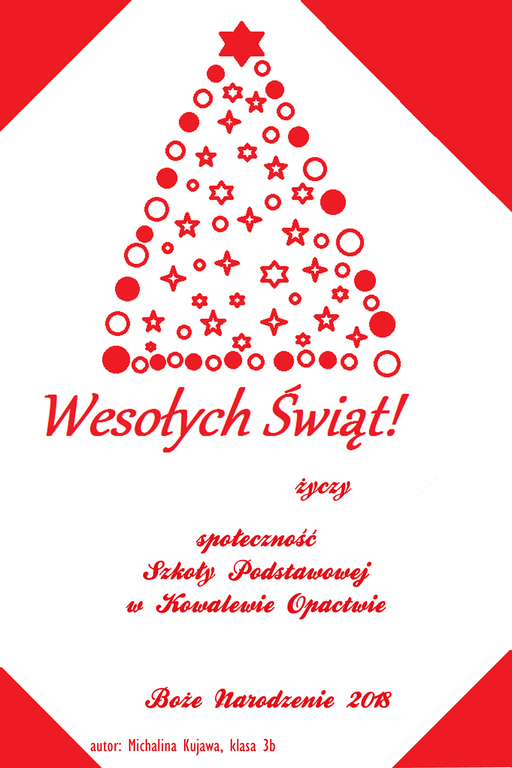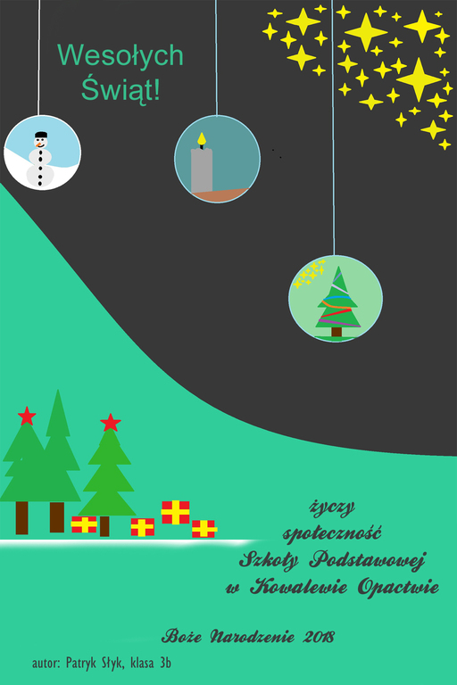 Zwycięskie kartki bożonarodzeniowe Michaliny i Patryka Zdjęcia Zobacz również Żywa Lekcja Historii Szkolenie PZPN – AMO (Akademia Młodych Orłów) Międzynarodowy Dzień Praw Człowieka Zwycięskie kartki bożonarodzeniowe Michaliny i... Boże Narodzenie w kowalewskiej szkole Jaselka najmłodszych 21 grudnia 2018 Aktualności Wydrukuj Udostępnij Wyświetlono: 620
