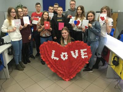 Uczniowie klas 3a i 3b klas gimnazjalnych przystąpli do krajowego międzyszkolnego projektu edukacyjnego eTwinning pt. Online Valentine's Date. Szkołą partnerską było gimnnazjum z województwa Świętkrzyskiego, któremu młodzież zaprezentowałą się nagrywająć krótki filmik o sobie, swoich zainteresowaniach oraz regionie. Młodzież przygotwała również kartki walentynkowe w języku angielskim, stworzyła idealny profil partnera na wymarzoną randkę walentynkową, przeprowadziła międzyszkolne głosowanie. Uczniowie wzięli również udział w grach online dotyczących Dnia Świętego Walentego. Koordynatorem projektu był nauczyciel angielskiego - Przemysław Walerczyk.