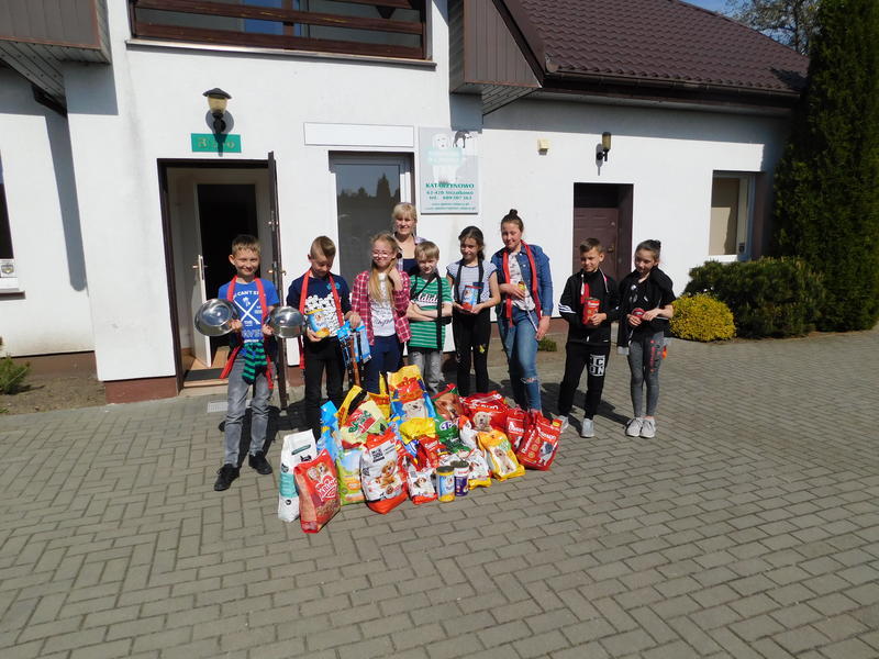 Jak co roku uczniowie naszej szkoły włączyli się w zbiórkę suchej karmy dla bezdomnych psów, przebywających w schronisku w Katarzynowie, na terenie gminy Strzałkowo. Uczniowie zebrali ogółem 90 kilogramów suchej karmy a za zebrane od każdej klasy i nauczycieli pieniążki, zakupione zostały obroże i smycze, które 26 kwietnia uczniowie klasy czwartej pod opieką pani Doroty Szelążek–Blejwas, zawieźli do schroniska. Wszystkim uczniom i nauczycielom, którzy wzięli udział w zbiórce serdecznie dziękujemy.