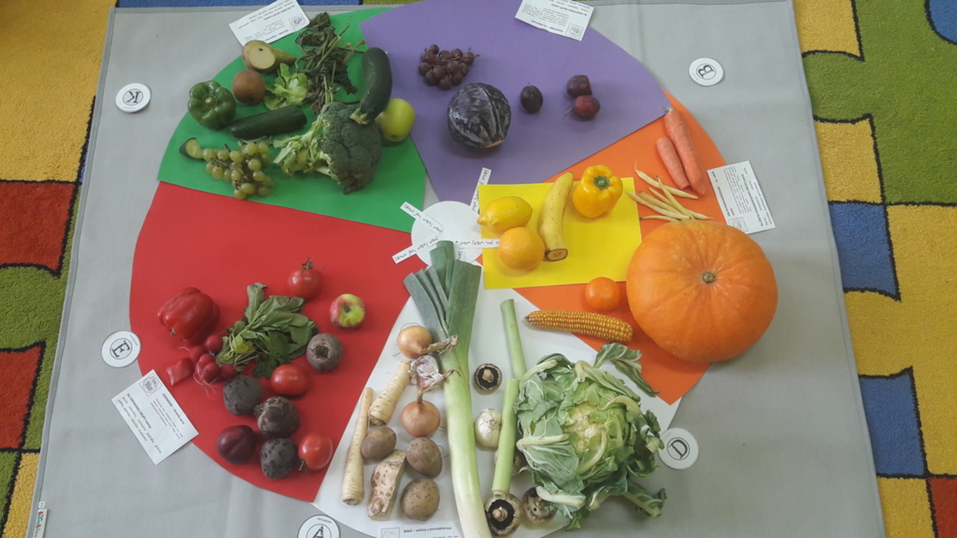 - kształtowanie nawyku jedzenia owoców i warzyw przy każdym posiłku. Podczas lekcji uczniowie skompletowali owoce i warzywa, by wśród nich znaleźli się reprezentanci każdej grupy kolorystycznej: