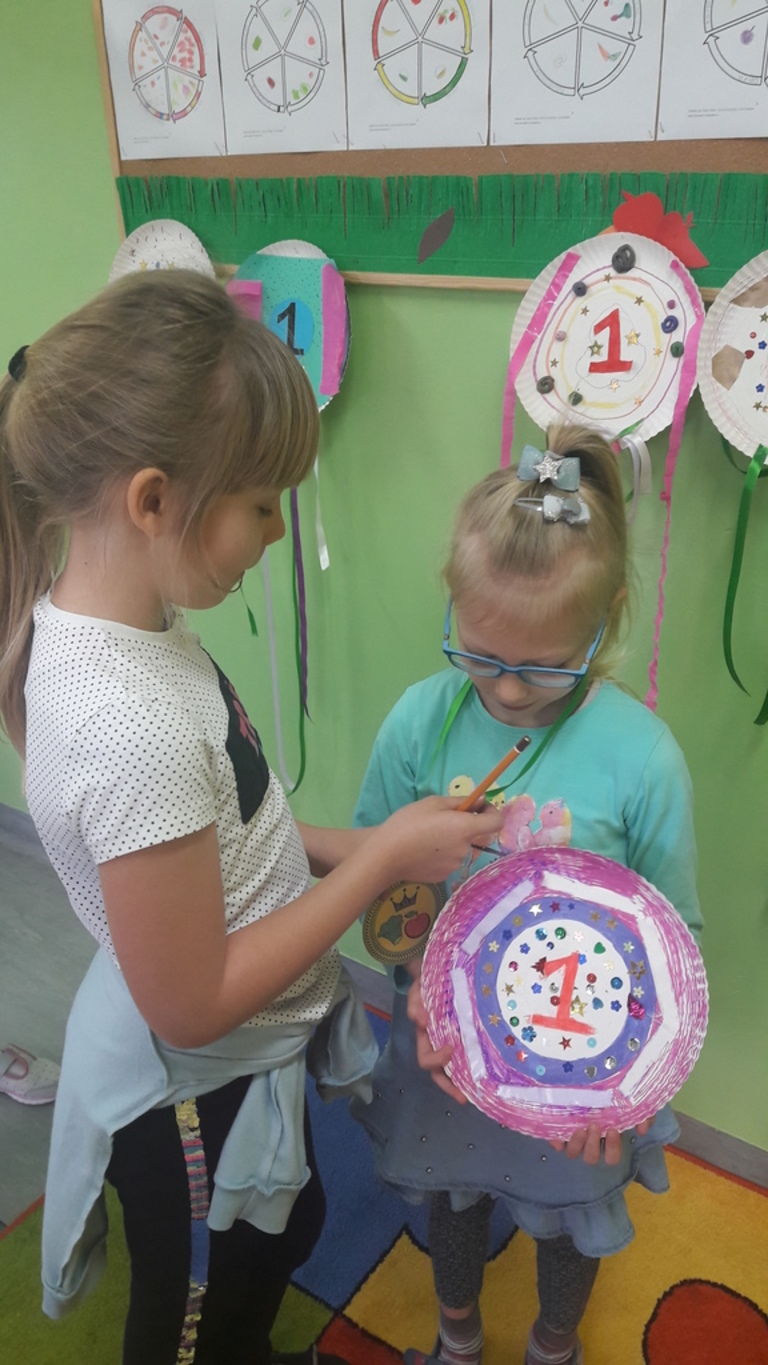 Jest to forma nagrody, o której marzy każde dziecko. Dzieci wymieniały swoje ulubione dyscypliny sportu za pomocą słów, gestów i rysunku (ćwiczenia dramowe, zabawa kalambury). Okazało się, że wszyscy bardzo lubią sport, zarówno oglądać jak i uprawiać. Następnie uczniowie przystąpili do zadania. Prace wykonano na jednorazowych, papierowych talerzykach, dowolna techniką z wybranych przez dzieci materiałów. Dzieci pracowały z zaangażowaniem. W dalszej części lekcji odbyła się prezentacja prac, w której uczniowie opowiedzieli o podejmowanych działaniach. Następnie drogą głosowania wybrano najciekawszy order. Każdy uczeń oddał jeden głos. Wygrała praca Elizy Bagrowskiej. Praca w całości została zaprojektowana w czasie zajęć. Na zakończenie zrobiono wystawę orderów na gazetce klasowej.
