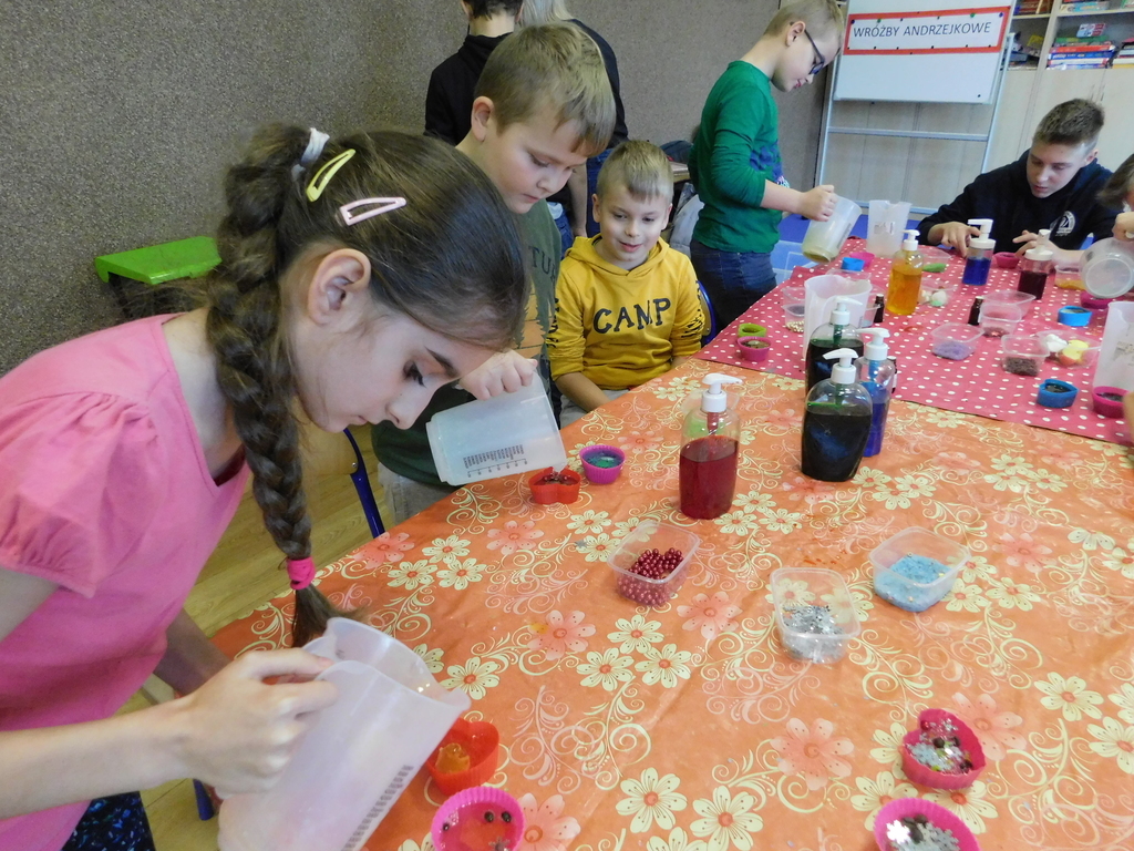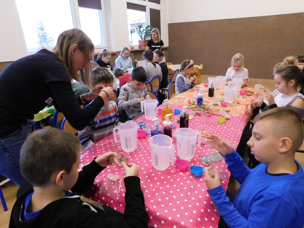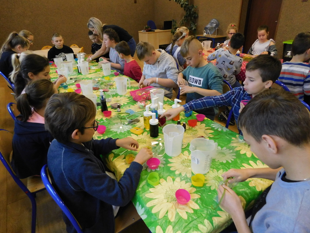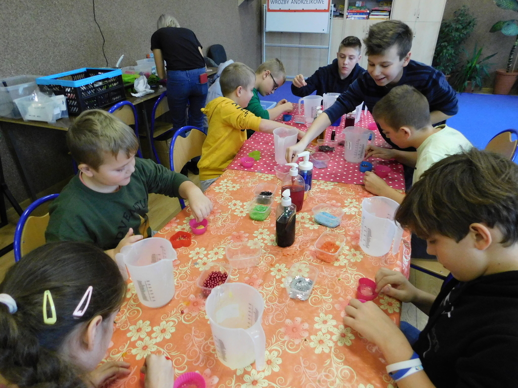Zajęcia umożliwiły przeniesienie się uczniów w pachnący świat mydła wyzwalając ich kreatywność. Była to nie tylko świetna zabawa, ale także lekcja chemii. Uczestnicy indywidualnie wybierali zapach, kolor i dekorowali mydełka rożnymi ozdobami, nadając im niepowtarzalny wygląd. Każde mydełko było wyjątkowe!