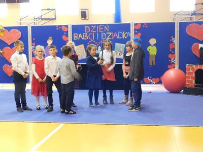 Na zakończenie spotkania z okazji Dnia Babci i Dziadka, uczniowie wręczyli swoim dziadkom wcześniej wykonane upominki.