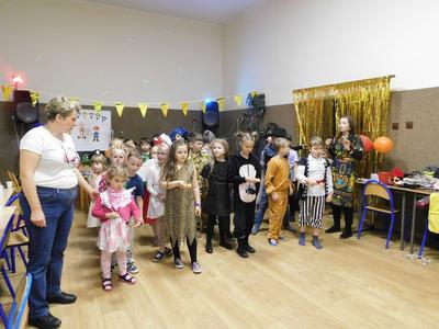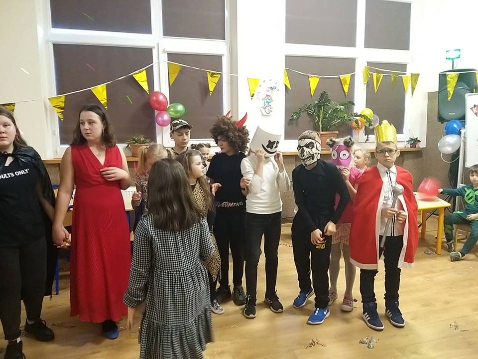 Na początku młodsi uczniowie z klas 1-3 oraz z oddziału przedszkolnego wzięli udział w zabawach i konkursach przygotowanych przez nauczycieli wychowawców. Wszyscy bawili się doskonale w rytmach wesołej muzyki, czego potwierdzeniem są zadowolone miny dzieci. Po wyczerpujących zabawach nadszedł czas na mały odpoczynek i słodki poczęstunek. Wykonane zostały również pamiątkowe zdjęcia w fotobudce. Starsi uczniowie natomiast wybierali króla i królowa balu, a także uczestniczyli w rożnego rodzaju konkursach.