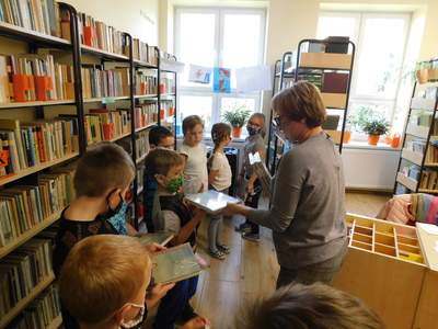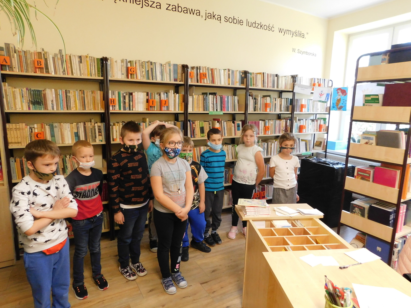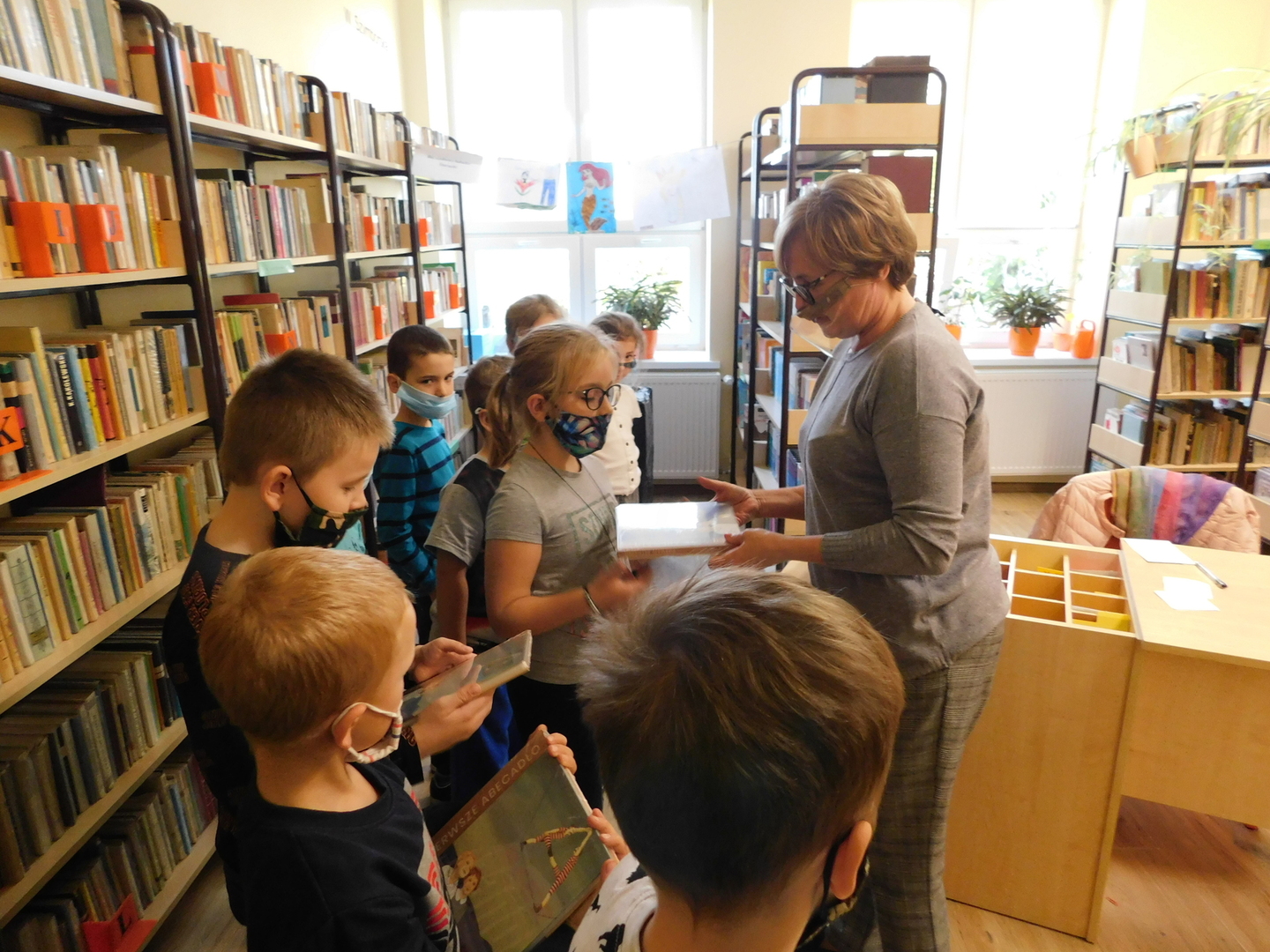 Nasi pierwszoklasiści odwiedzili dziś (4 listopada) bibliotekę szkolną, gdzie otrzymali Wyprawkę Czytelniczą, w skład której weszły: książka "Pierwsze abecadło", broszura informacyjna dla rodziców i opiekunów "Książką połączeni, czyli uczymy się czytać razem" oraz kreatywny alfabet.