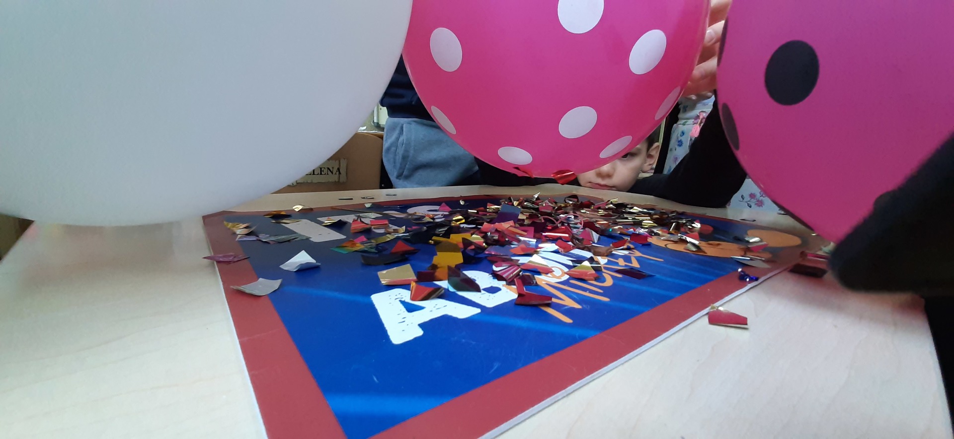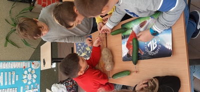 Druga lekcja oparta była na tematyce związanej z prądem elektrycznym. Klasa dowiedziała się i zrozumiała, jak powstaje prąd i czym on jest. Uczniowie poznali różne sposoby pozyskiwania prądu - bardziej lub mniej ekologiczne. Po obejrzeniu prezentacji, zebraniu i zapamiętaniu najważniejszych wiadomości, klasa wspólnymi siłami prawidłowo rozwiązała test obrazkowy w formie gry interaktywnej. Obejrzany film o prądzie z ogórka zachęcił ich do przeprowadzenia doświadczenia. Dzieci sprawdzały, czy uda im się zaświecić diodę łącząc owoce i warzywa w szeregu oraz elektryzowały balony, próbując przyciągnąć nimi kawałki kolorowego papieru. Wszyscy chętnie brali udział w zajęciach i z zaciekawieniem rozwiązywali zadania. Brawo!
