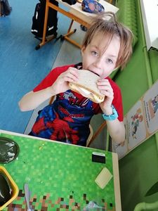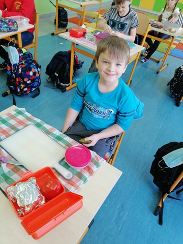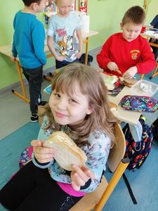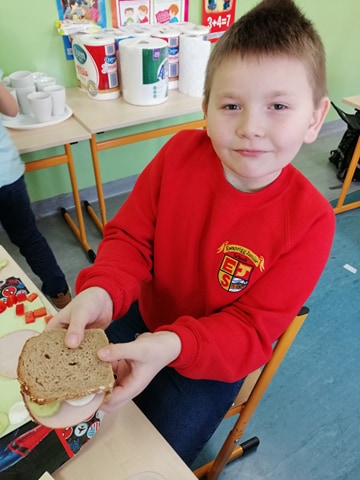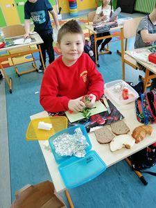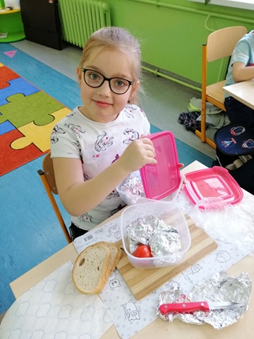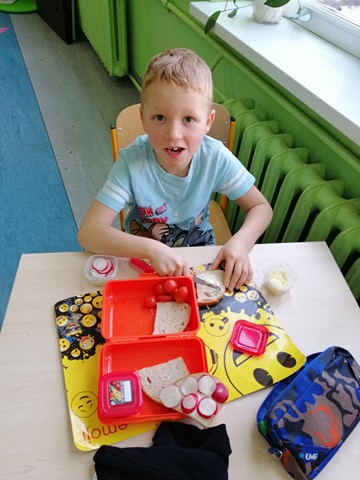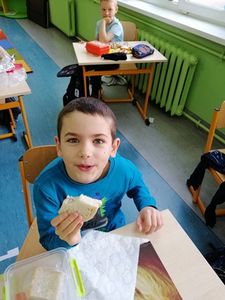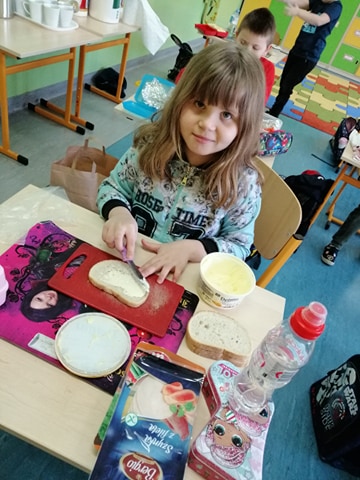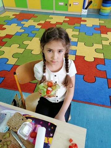 Klasa I utrwalila sobie istotne informacje na temat zdrowego żywienia. Niestety nasze współczesne czasy czasem nakłaniają nas do korzystania z niezdrowego i szybkiego jedzenia, dlatego należy uświadamiać nasze najmłodsze pokolenie o tym jak powinniśmy się odżywiać oraz dlaczego jest ono tak ważne w naszym życiu. Dzisiaj nasze pierwszaki przygotowały samodzielnie zdrowe i pożywne kanapki.