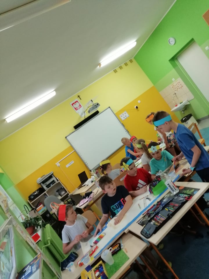 Lato to pora roku wyczekiwana przez wszystkie dzieci - w końcu lato to wakacje, lody na patyku, zamki z piasku, latawce i dużo dobrej zabawy. Uczniowie z klas I - III poczuli letnią atmosferę w swoich klasach. Przypomnieli charakterystyczne cechy lata jako nowej pory roku, zmiany zachodzące w przyrodzie w tym czasie. Rozwiązywali zagadki słowne i rysunkowe. Miały również okazję opowiadać o swoich wymarzonych wakacjach oraz tych, które miały miejsce, a pozostawiły duży ślad w ich pamięci. Ponadto uczniowie dowiedzieli się jakie niebezpieczeństwa czyhają na nich nad wodą, w lesie czy też górach oraz jak reagować w przypadku ich wystąpienia. Na koniec dzieci wykonały plakaty przedstawiające piękne, letnie krajobrazy.