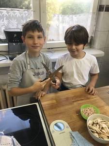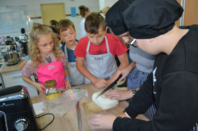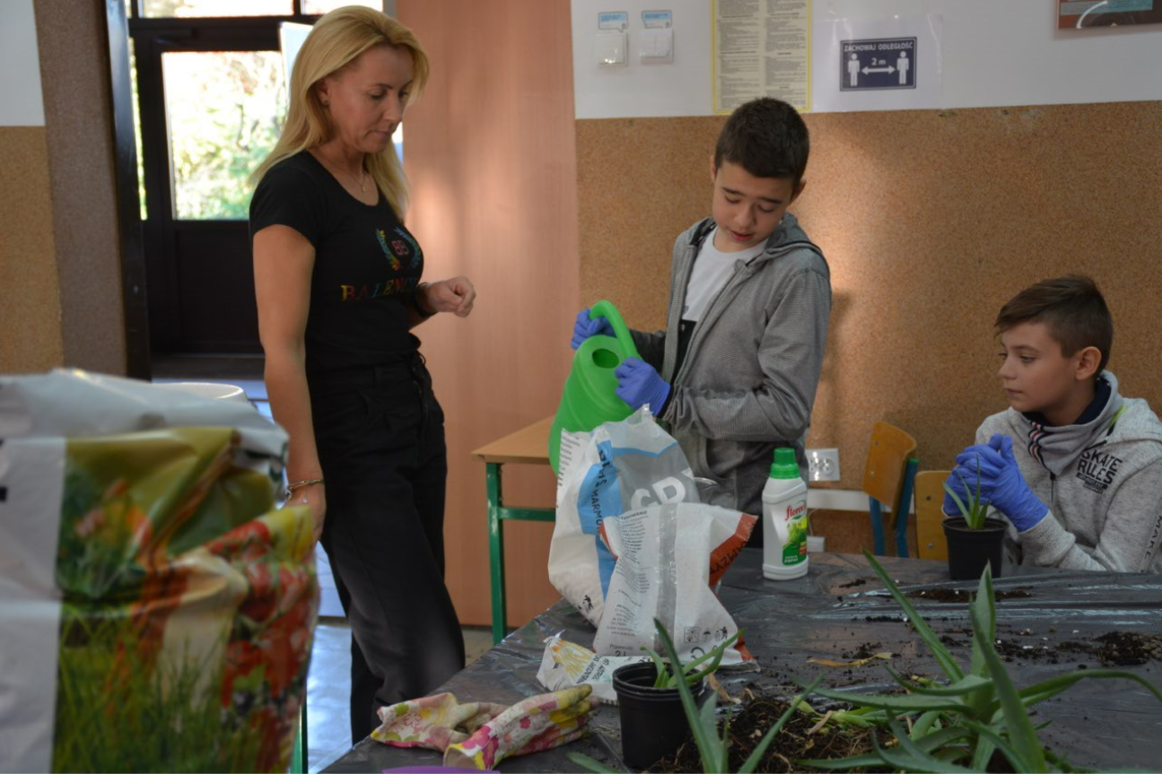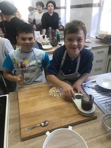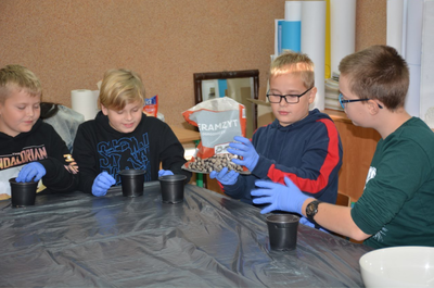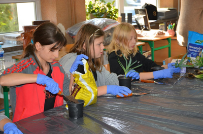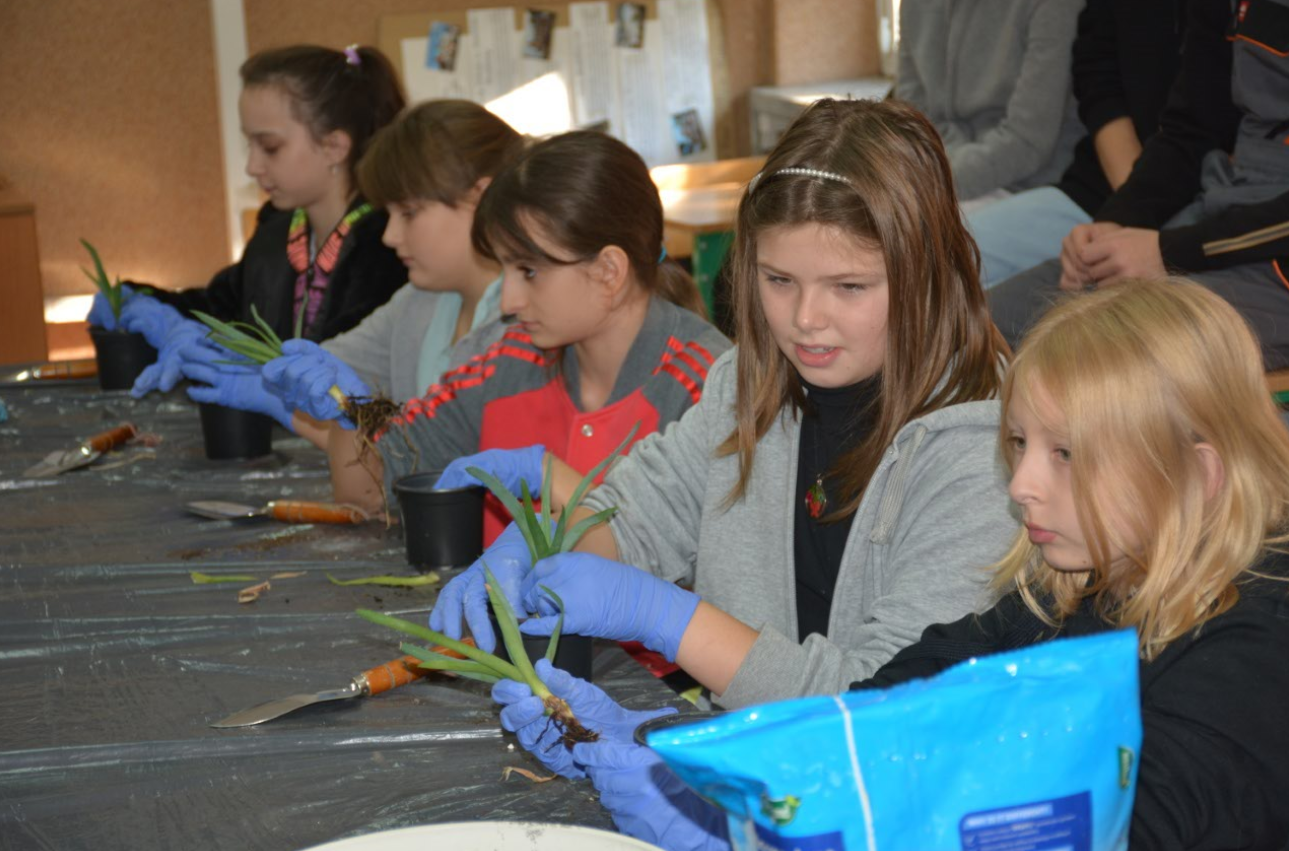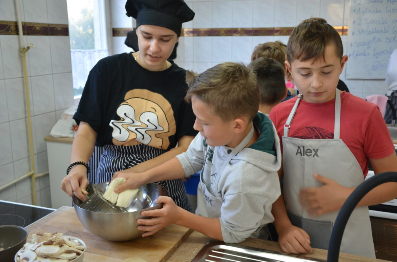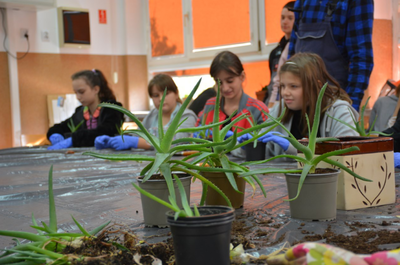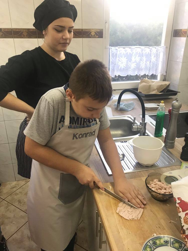 Uczniowie klasy IV pod okiem p. Jolanty Swat uczestniczyli w warsztatach kulinarnych, gdzie odkrywali tajniki kuchni, przygotowując pizzę. Z małą pomocą asystentek – uczennic Technikum Żywienia i Usług Gastronomicznych – nasi czwartoklasiści wg przepisu przygotowali i zarobili ciasto, a następnie upiekli pizzę ze swoimi ulubionymi dodatkami. Pizza była przepyszna, a swoim daniem podzielili się ze starszymi kolegami. Natomiast uczniowie z klasy V i VI brali udział w zajęciach z pielęgnacji roślin, które prowadziła p. Urszula Ławniczak oraz w warsztatach językowych prowadzonych przez p. Joannę Adamską. W czasie zajęć piąto – i szóstoklasiści dowiedzieli się, w jaki sposób rozmnożyć i przesadzić roślinę zgodnie ze sztuką ogrodniczą, a także sporządzić ciecz nawozową w odpowiedniej dawce. Czy u młodych ogrodników udało się zaszczepić pasję do uprawy roślin? Z pewnością się dowiemy, bowiem z zajęć zabrali własnoręcznie posadzone młode roślinki, które obiecali pielęgnować w domu. Wzbogacili także kompetencje językowe po angielsku, ponieważ nauczyciel anglista przeprowadził ciekawą lekcję o uprawie roślin.