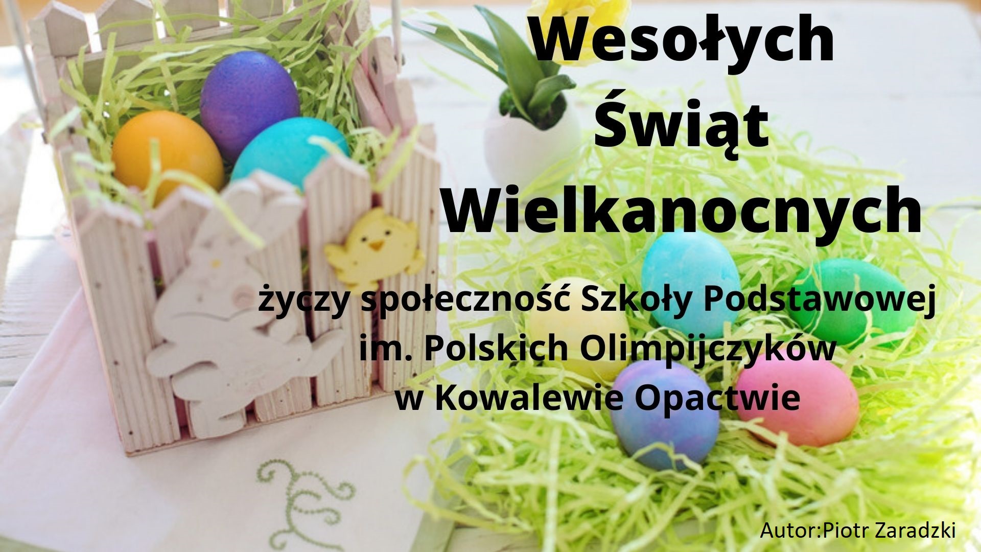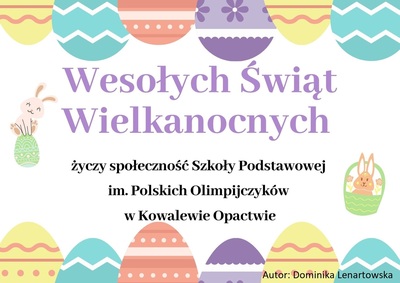 Z ogromną przyjemnością ogłaszamy wyniki konkursu na najpiękniejszą kartkę wielkanocną. W tym roku najbardziej zachwyciły nas kartki wykonane przez uczniów: Dominikę Lenartowską z klasy VIII oraz Piotra Zaradzkiego z klasy VII. Prace uczniów zostaną wysyłane jako życzenia z naszej szkoły. Serdecznie dziękujemy wszystkim uczestnikom za piękne prace, zaangażowanie, pomysłowość i kreatywność.