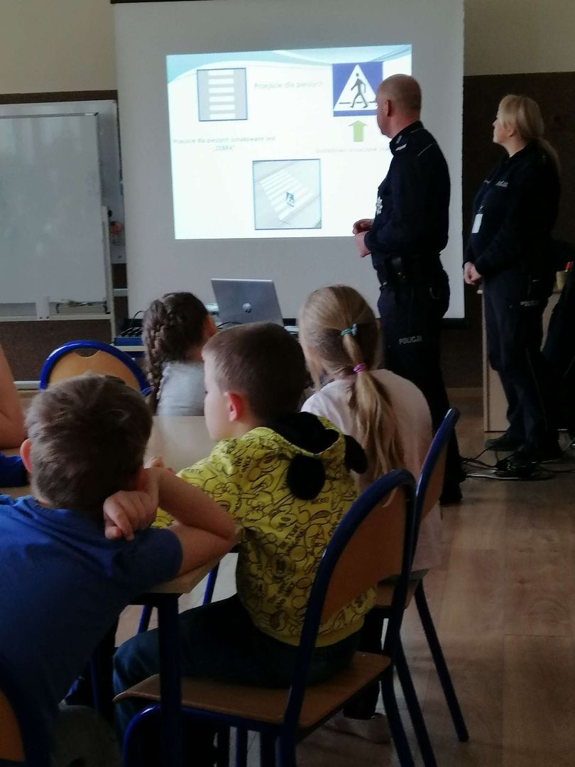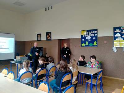 11 kwietnia naszą szkołę odwiedził sierżant sztabowy Marcin Dębowski oraz aspirant Małgorzata Król. Funkcjonariusze przedstawili uczniom klas I-III istotne fakty i zasady na temat bezpieczeństwa. Natomiast uczniowie klas IV-V zostali zapoznani z tematem bardzo współczesnym dotyczącym cyberprzemocy.