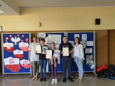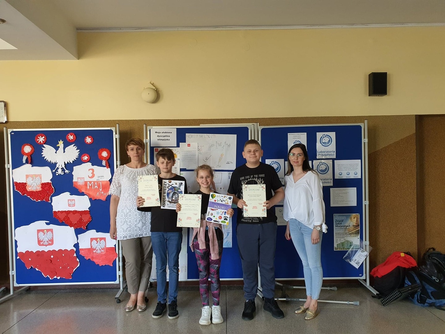 W Szkolnym Konkursie na doświadczenie fizyczno - chemiczne wyróżnione zostały prace Aleksandry Lewandowskiej i Adama Jurgi z kl. IV oraz Wiktora Pendzińskiego z kl. VIII. Uczniowie przygotowali krótkie filmy, na których zaprezentowali ciekawe eksperymenty.