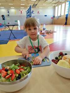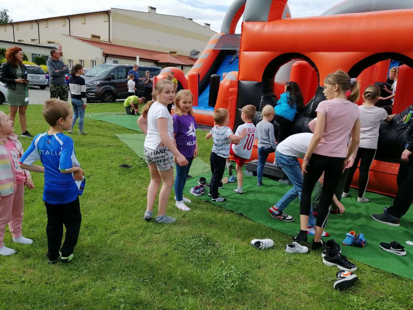 Na rodziców czekały również prezenty przygotowane przez naszych podopiecznych. Następnie odbyły się różne konkurencje sportowe na wesoło, a także wspólna zumba. Rodzice natomiast przygotowali dla wszystkich pyszne gofry, ciasta i hot-dogi, a także owocowe sałatki. W naszym ogrodzie czekały na wszystkich dmuchańce i radiowóz policyjny w którym każdy mógł wcielić się w rolę funkcjonariusza policji... Cały dzień upłynął nam na wspaniałej zabawie...
