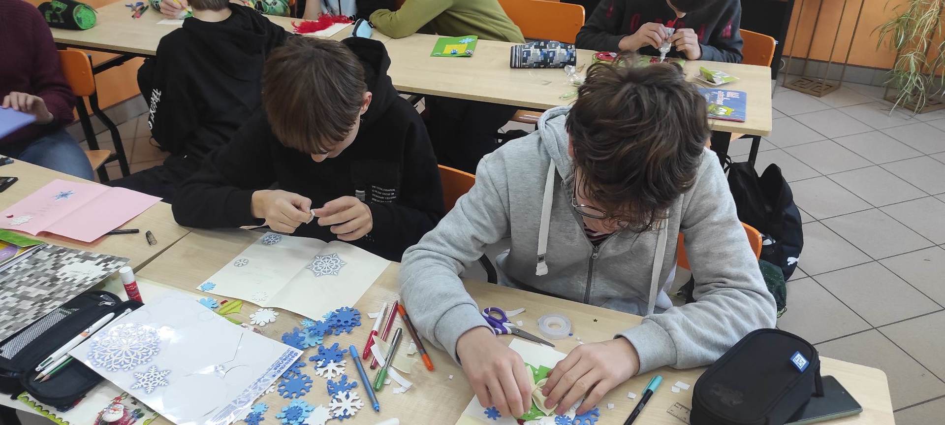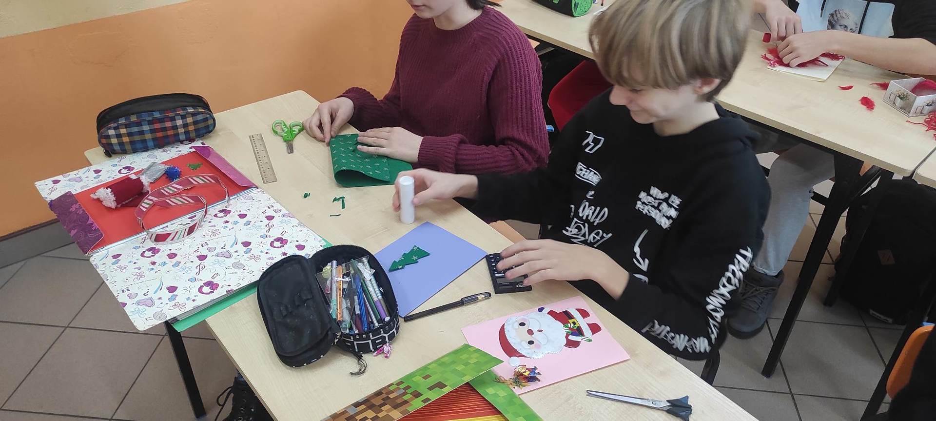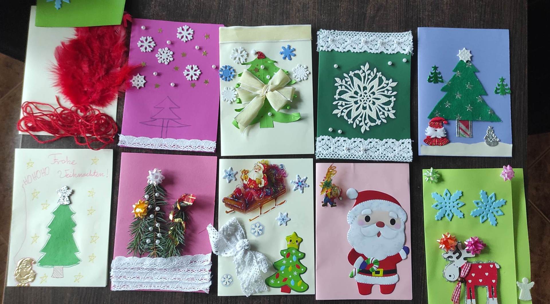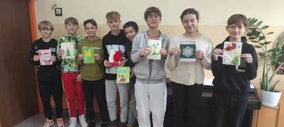 Coraz bliżej święta i w powietrzu pomału czuć już magiczną atmosferę Bożego Narodzenia. To czas składania sobie życzeń, czy to osobiście, czy też pisząc tradycyjne kartki świąteczne. Uczniowie klasy VIII wzięli udział w projekcie Austausch von Weihnachtskarten - wymiana kartek świątecznych, który polegał na wykonaniu kartek z tradycyjnymi życzeniami w języku niemieckim. Kartki zostały wysłane do szkół za granicę . Z niecierpliwością czekamy na kartki z życzeniami dla nas.