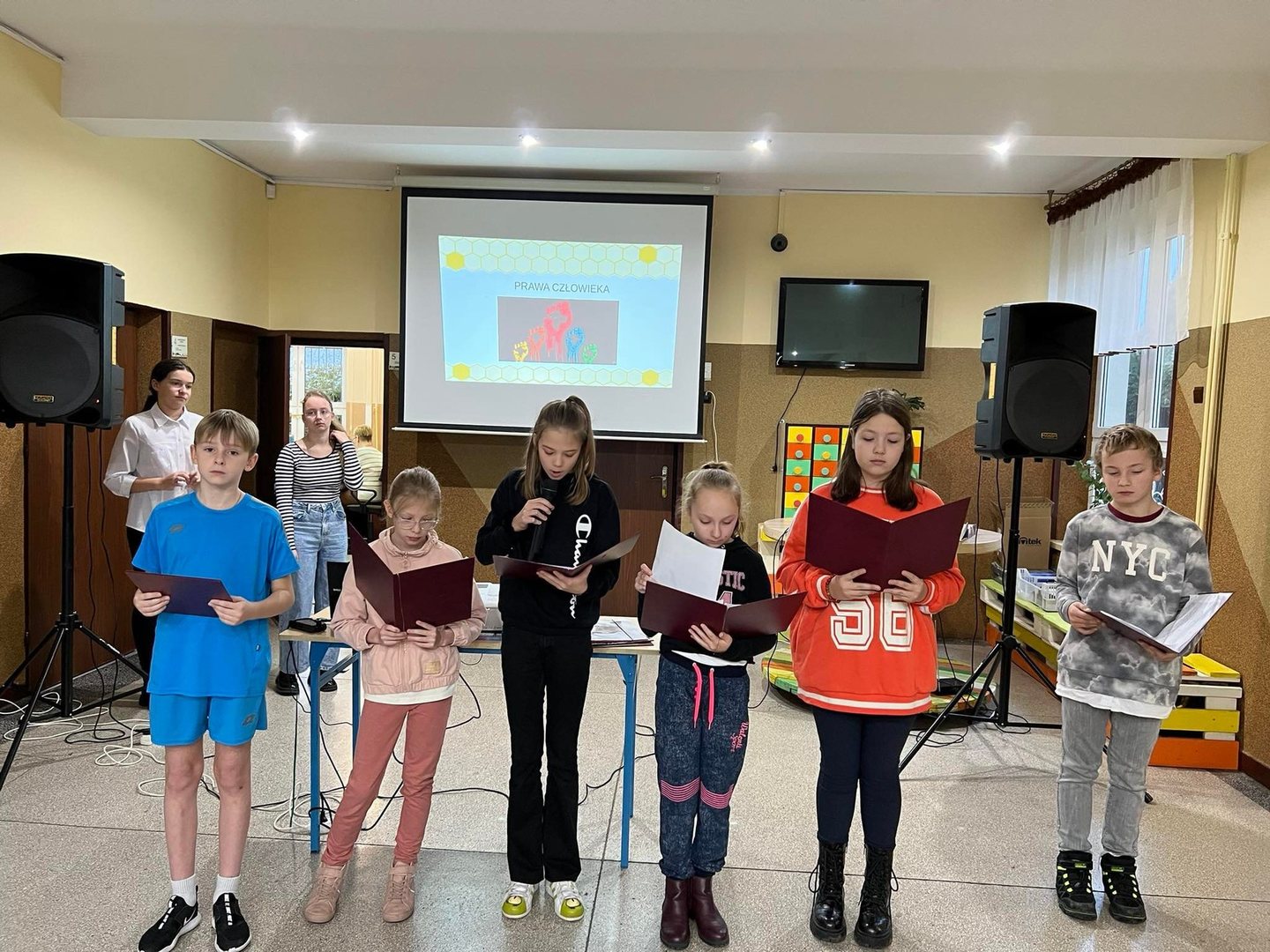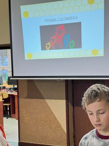 W piątek obchodziliśmy Międzynarodowy Dzień Praw Człowieka. Uczniowie obejrzeli krótką akademię przygotowaną przez klasę IV oraz prezentację przygotowaną przez uczennice z klasy VIII Kasię Kierkowską i Zosię Walczak.