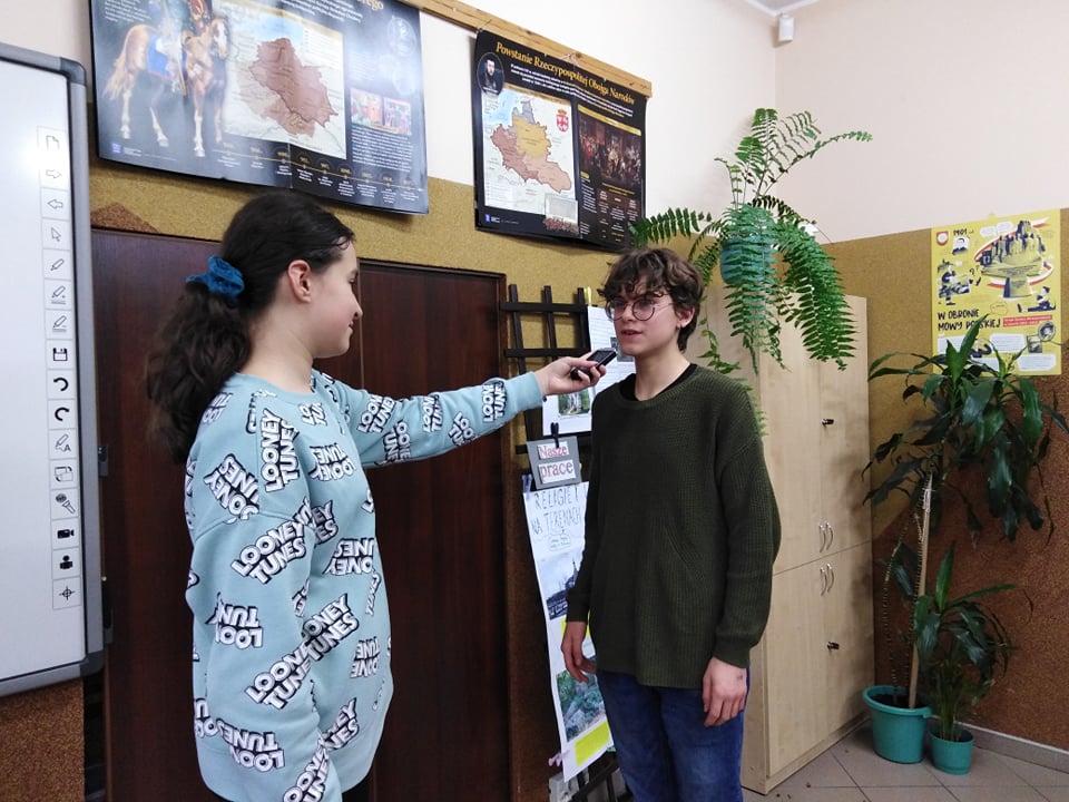 18 stycznia 2023 roku - lekcja języka polskiego w kl. 8. Tematyka zajęć: Dzieje Skawińskiego - powstańca i emigranta. Wywiad ze Skawińskim - uczniowie wcielili się w dziennikarzy i bohatera "Latarnika" Sienkiewicza. Dyktafon zakupiony w ramach programu Laboratoria Przyszłości jako narzędzie pracy dziennikarza znalazł swoje zastosowanie i został w pełni wykorzystany.