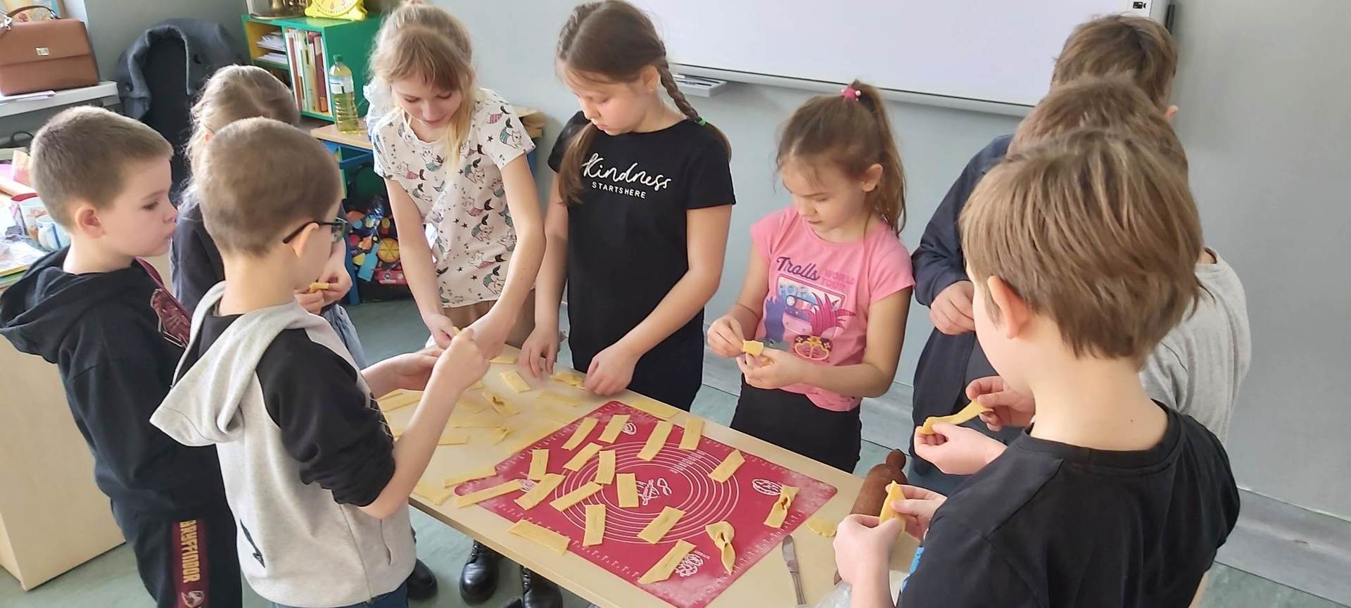 Zgodnie z tradycją uczniowie klas I-III świętowali na słodko dzisiejsze zajęcia. Degustowali się pysznymi pączusiami oraz chrupiącymi faworkami. Poznali historie i tradycje tego zwyczaju. Klasa II samodzielnie wykonała faworki pod kierunkiem nauczyciela. Wgłębili się w historię Combrowego Czwartku. Natomiast klasa III podjęła wyzwanie rozkodowania zaszyfrowanych pączków 🍩🍩