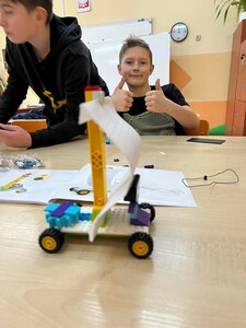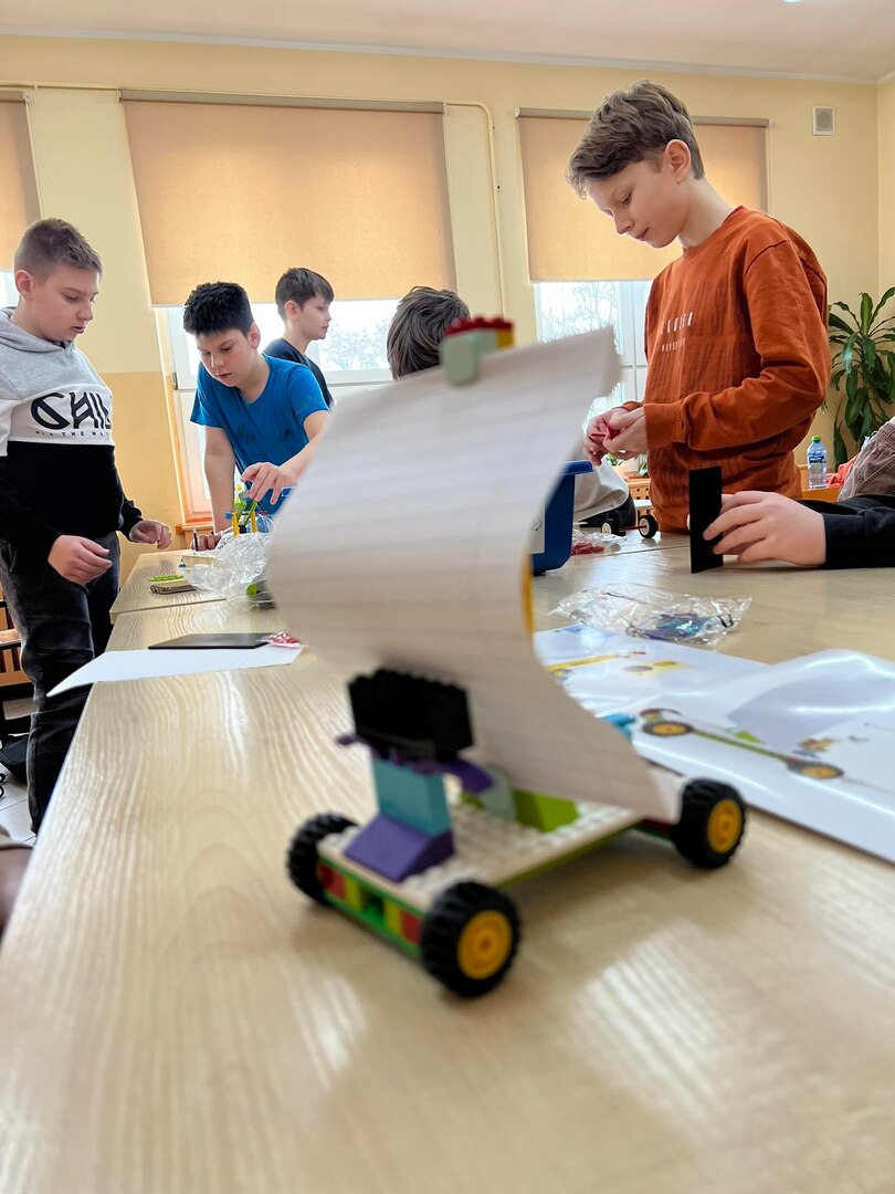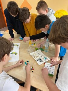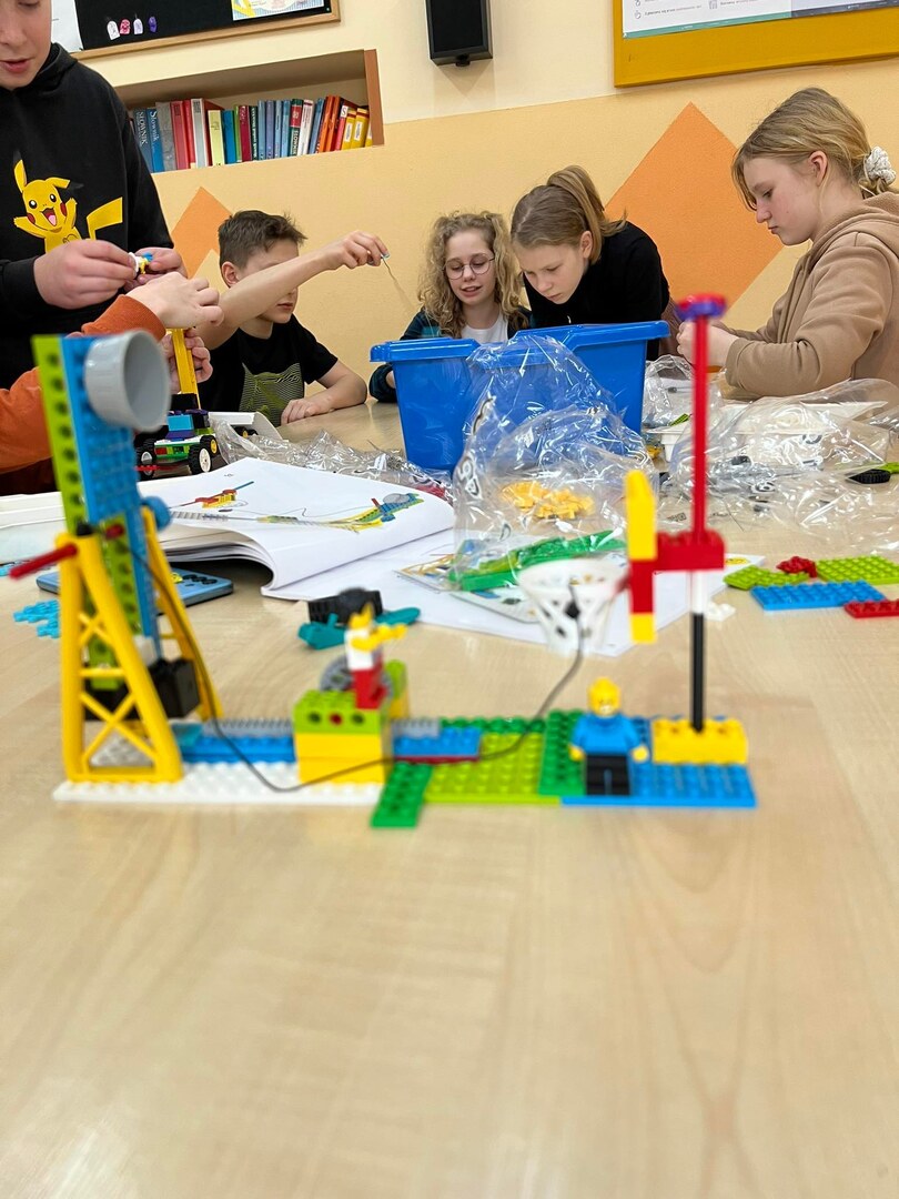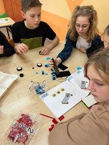 Zajęcia ZKK klasa 5- praca klockami LEGO. Klocki zakupione dzięki udziałowi szkoły w programie Laboratora Przyszłości.