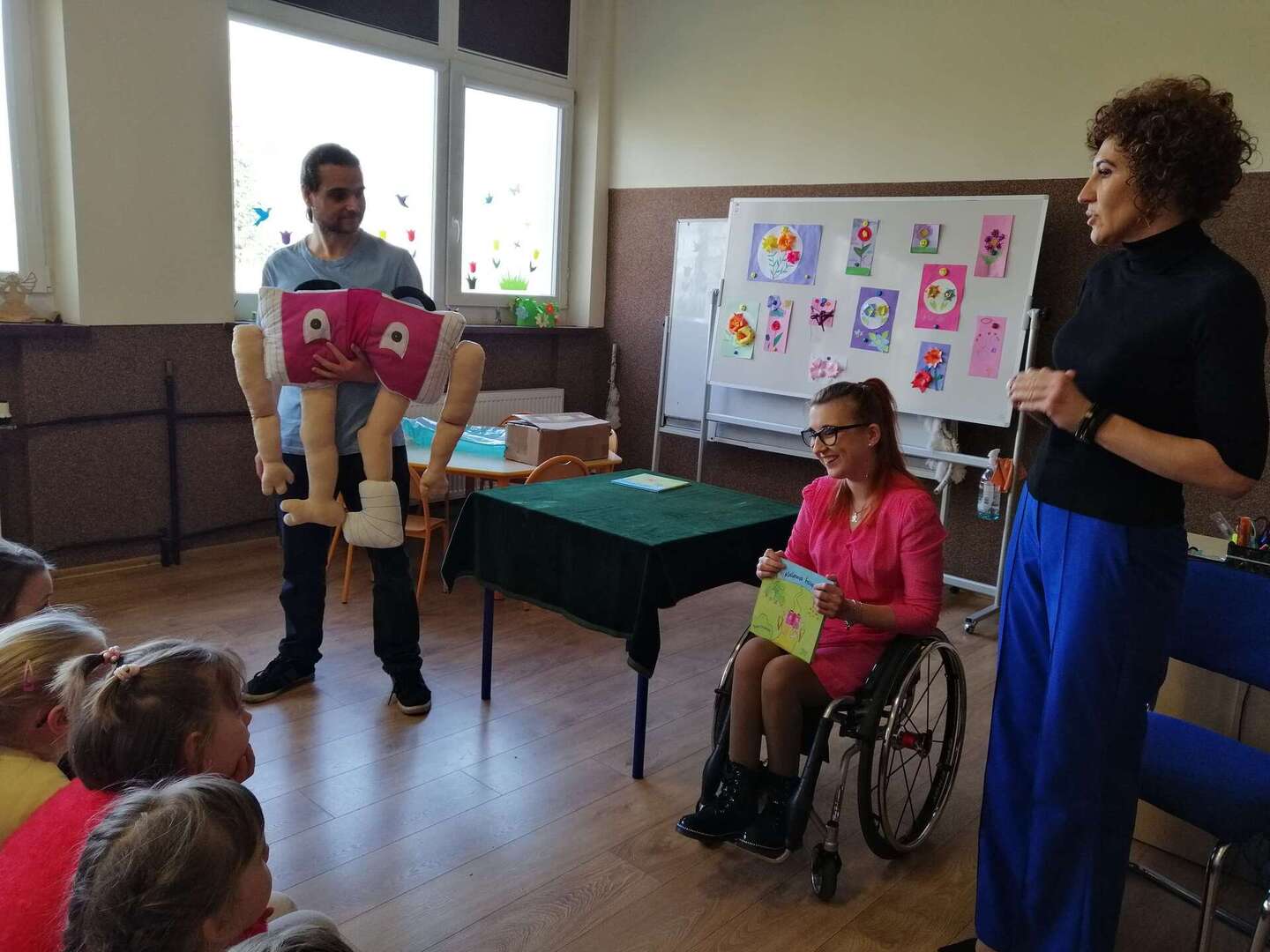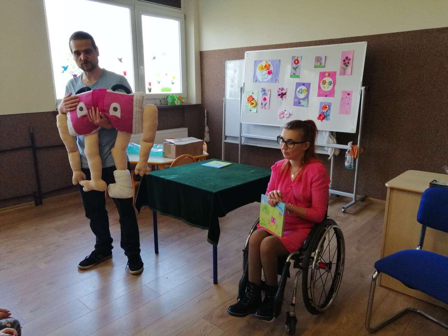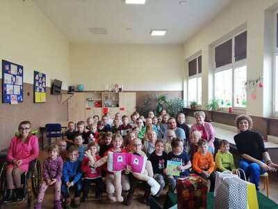 17 marca dzieci z oddziału przedszkolnego oraz uczniowie klas I-III mieli zaszczyt uczestniczyć w niezwykłej prelekcji z autorem ,, Kulawej Książeczki" Panem Dawidem Trzuskolasem oraz z Panią Joanna Perlińską. Celem tego spotkania było uświadomienie naszym podopiecznym, iż inność czy niepełnosprawność nie znaczy gorszy.