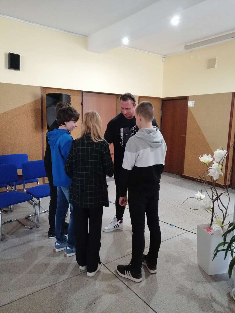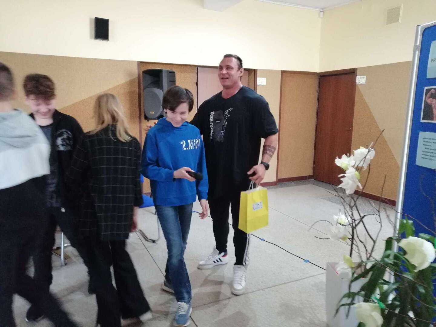 Dzisiaj odwiedził nas kulturysta, trener, zawodnik, sportowiec, pasjonat - niezwykły człowiek - Pan Rafał Fryta Frydrychowicz. Podczas spotkania przekazał nam mnóstwo cennych wskazówek, które pomogą nam w realizacji naszych zamierzeń. Spotkanie przebiegało w bardzo sympatycznej atmosferze. Już teraz wiemy, że każdy z nas może być olimpijczykiem w wybranej przez siebie dziedzinie życia. Najważniejsze, aby wyznaczyć i z zaangażowaniem (cierpliwie, dzielnie i nieugięcie) realizować wyznaczone przedsięwzięcia.