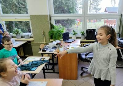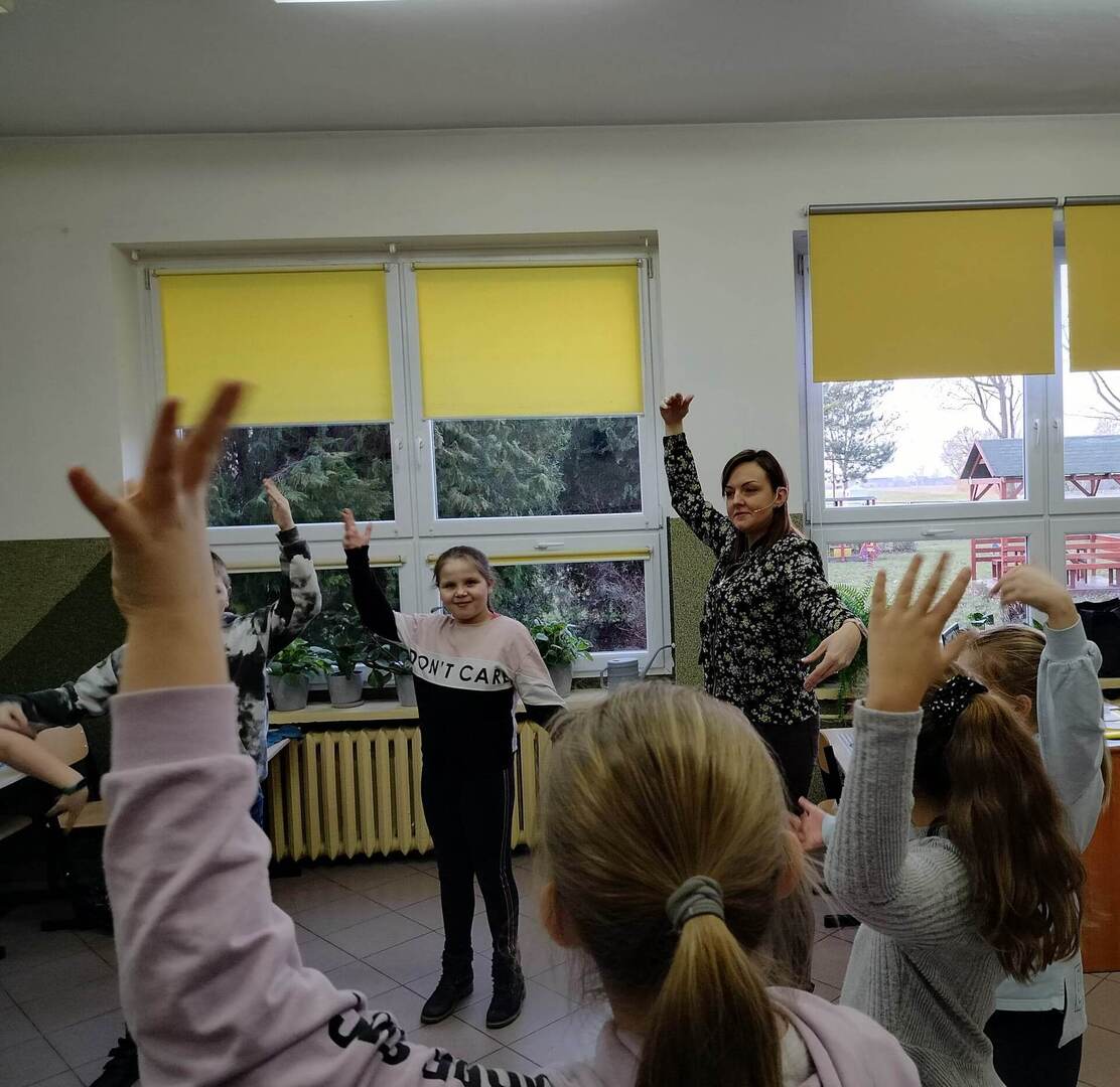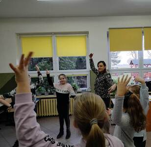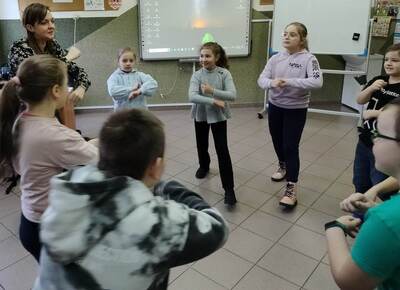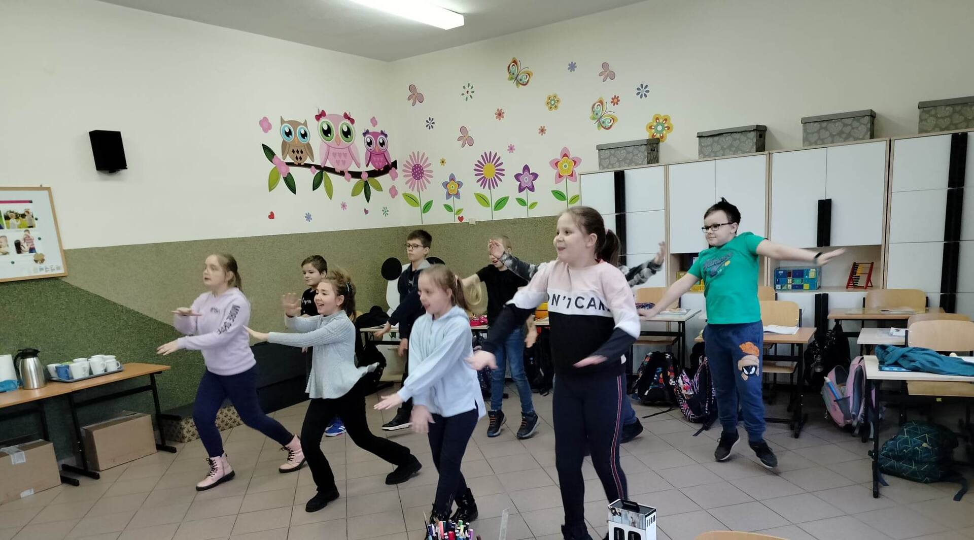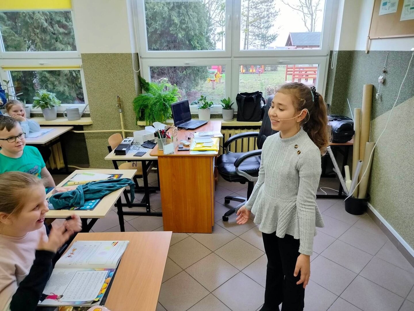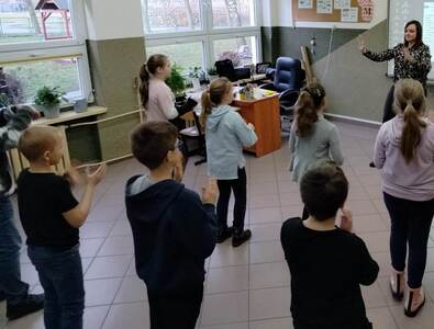 Uczniowie korzystając ze sprzętu zakupionego w ramach programu "Laboratoria Przyszłości" pracują nad techniką śpiewania z użyciem mikrofonów. Sprzęt wykorzystywany jest również podczas zajęć tanecznych, na których dzieci poznają kroki podstawowe polskich tańców narodowych oraz uczą się układów tanecznych do muzyki współczesnej (z elementami tańców latynoamerykańskich).