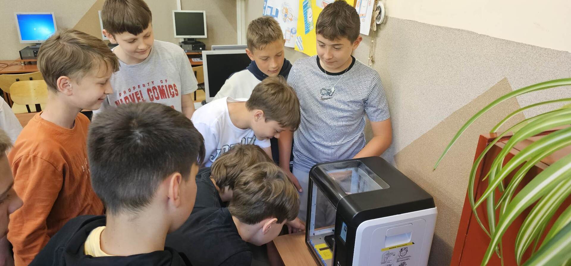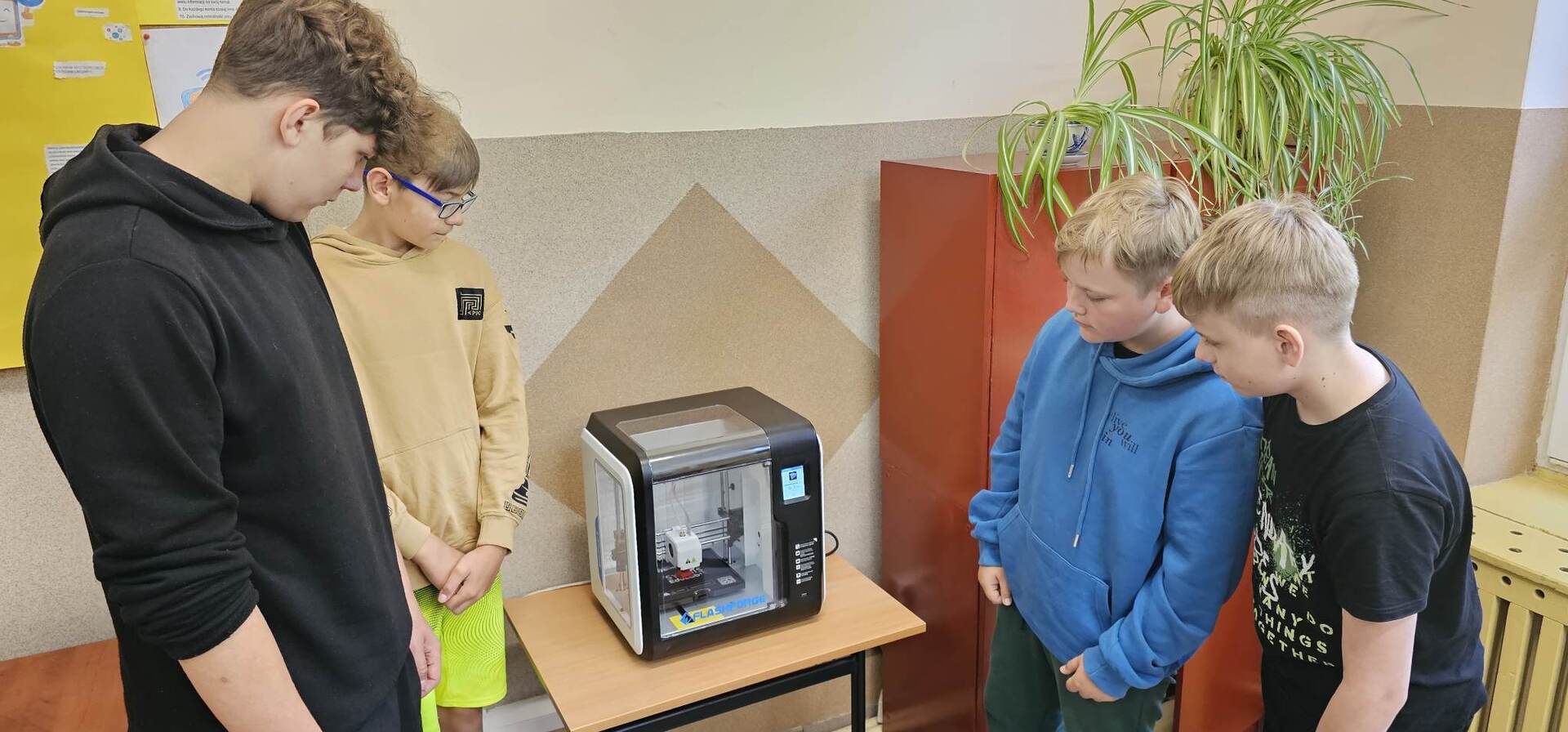 W dniu dzisiejszym na lekcji informatyki uczniowie klas IV-VI testowali drukarkę 3D zakupioną w ramach projektu Laboratoria Przyszłości.