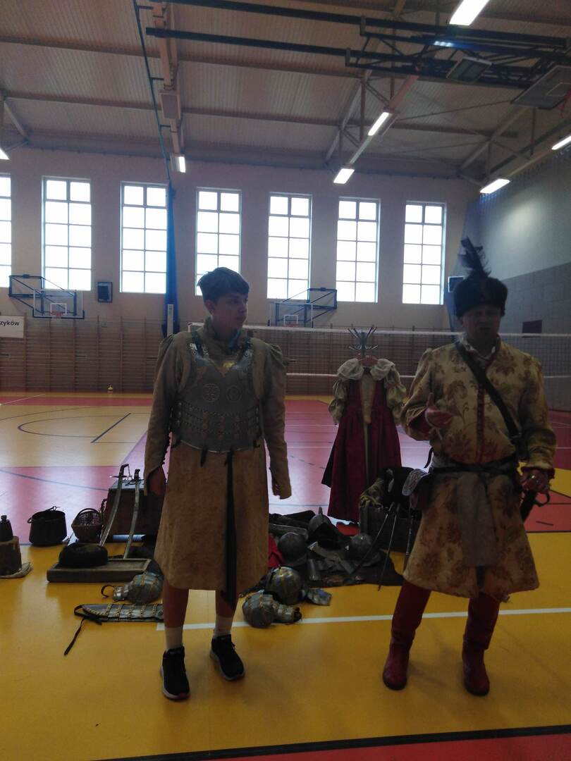 "Jak to Sobieski pod Wiedniem wojował" - to temat "żywej lekcji historii", która odbyła się dziś, 14 czerwca, w naszej placówce. Spektakl przybliżył najważniejsze wydarzenia i daty z czasów od panowania Stefana Batorego do Jana III Sobieskiego. Odbyła się prezentacja oręża: pełna zbroja husarska, kolczugi, hełmy, szable, broń palna. Miejsce miały też scenki historyczne z udziałem publiczności i konkursy z nagrodami. Spotkanie zakończyło się wystrzałem z broni czarno prochowej. Wszystko przebiegało w miłej atmosferze okraszonej niepowtarzalnym dowcipem...