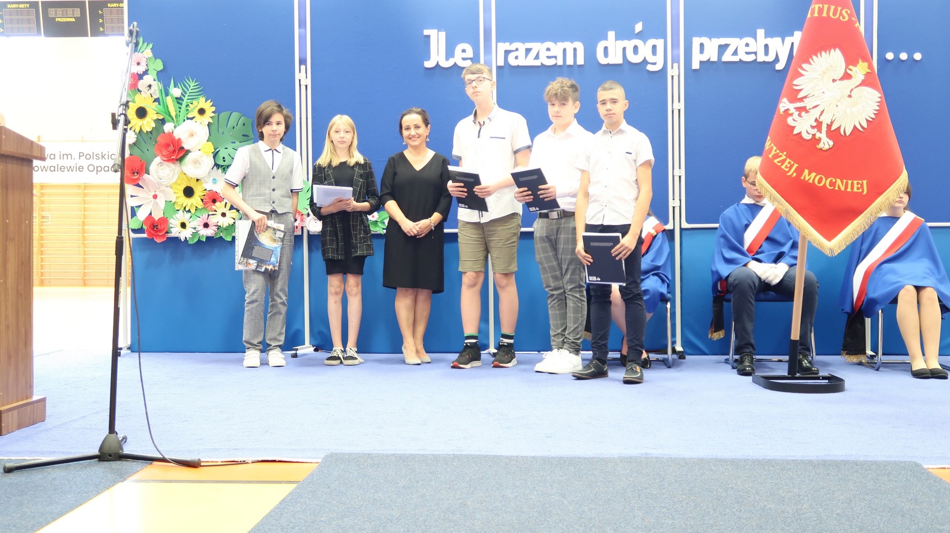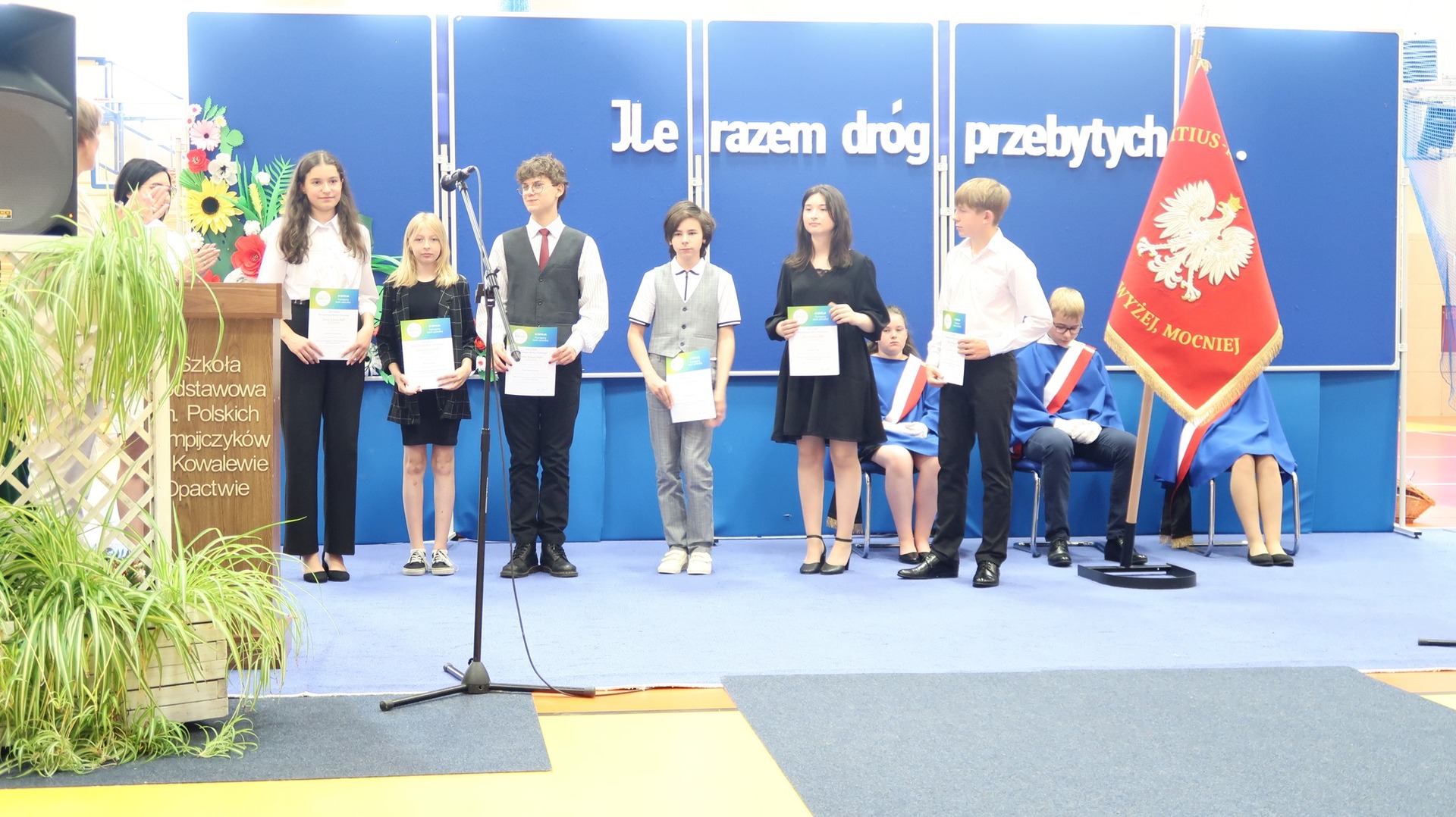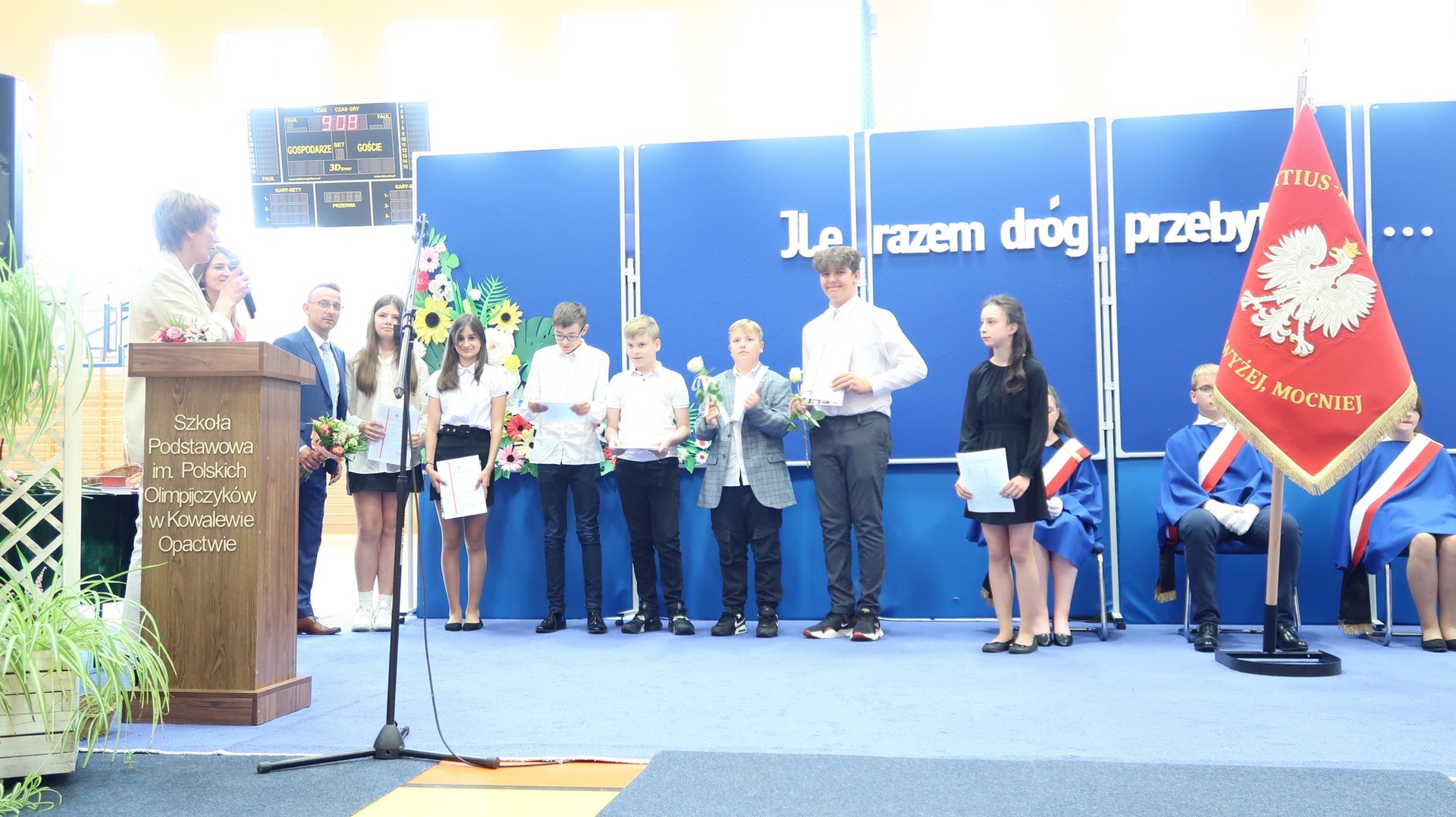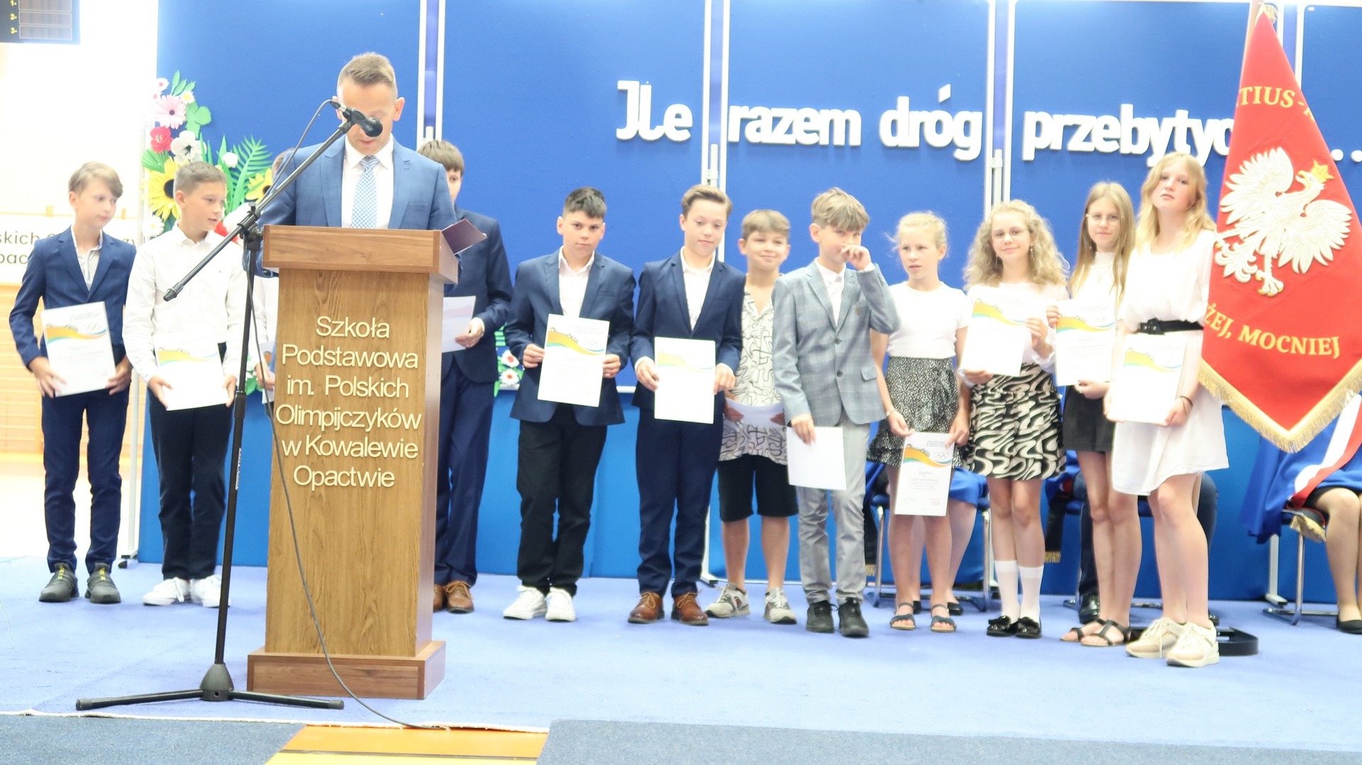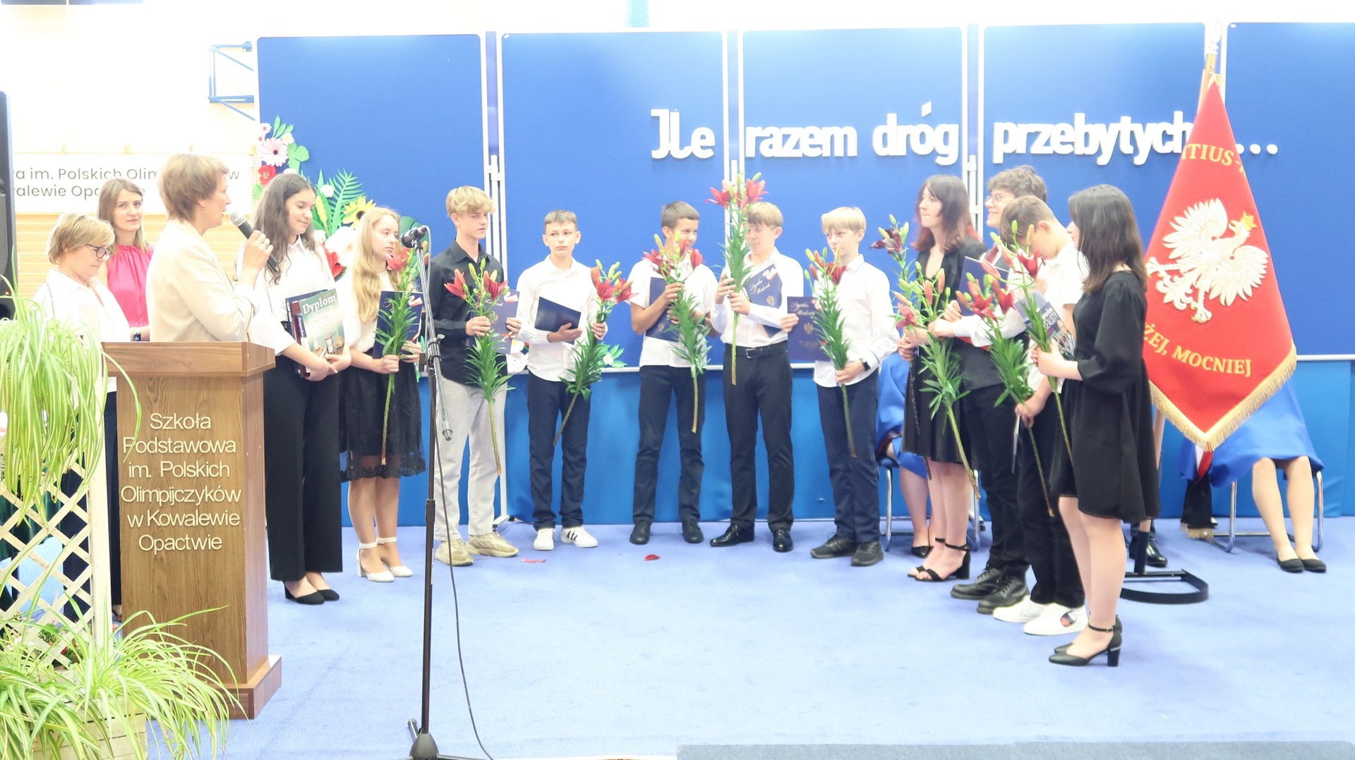 23 czerwca odbyło się w naszej szkole uroczyste zakończenie roku szkolnego oraz pożegnanie Absolwentów naszej szkoły. Tegoroczne wydarzenie rozpoczął niezwykle wzruszający występ klasy VIII przygotowany pod okiem Pani Danuty Król oraz Pani Katarzyny Nowak. Jeszcze raz dziękujemy za wspaniałe wrażenia artystyczne. Najlepszym Absolwentem w roku szkolnym 2022/2023 została Katarzyna Kierkowska, która otrzymała nagrodę Wójta Gminy Słupca. Pragniemy serdecznie pogratulować naszym uczniom klasy VIII oraz życzyć im dalszych sukcesów oraz realizacji marzeń i planów. Podczas naszego zakończenia wręczono wiele nagród w różnych dziedzinach nauki. Szczególnie ważne było wręczenie wyróżnień i podziękowań naszym sportowcom, którzy dzielnie reprezentowali naszą szkołę podczas zawodów w ciągu całego roku szkolnego. Stypendium Wójta Gminy Słupca otrzymała Helena Wróblewska oraz Ignacy Ucinek.