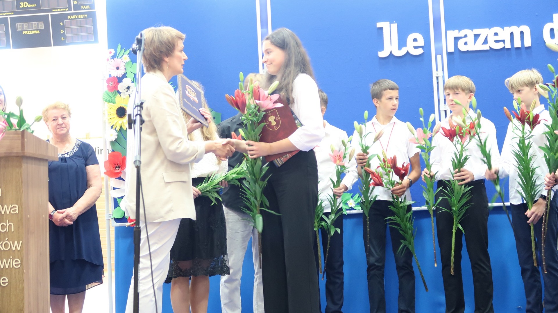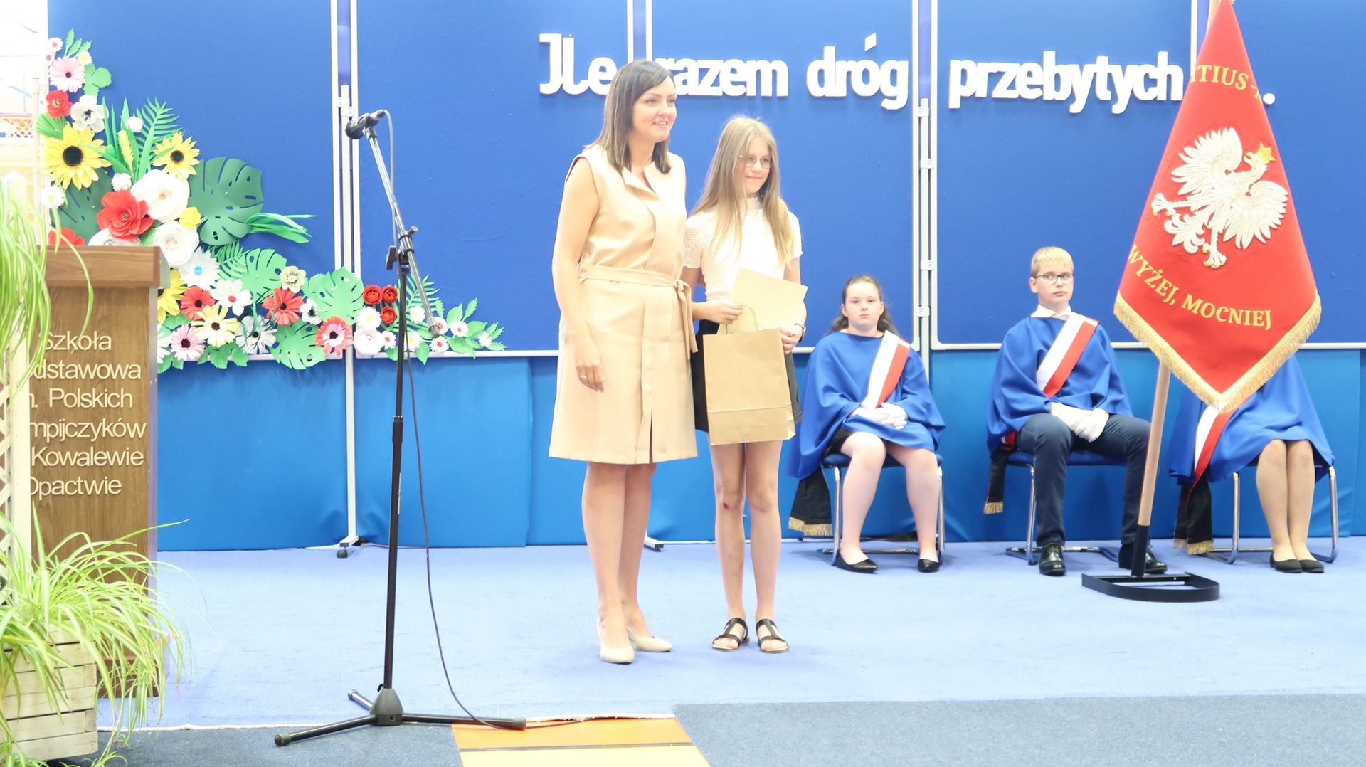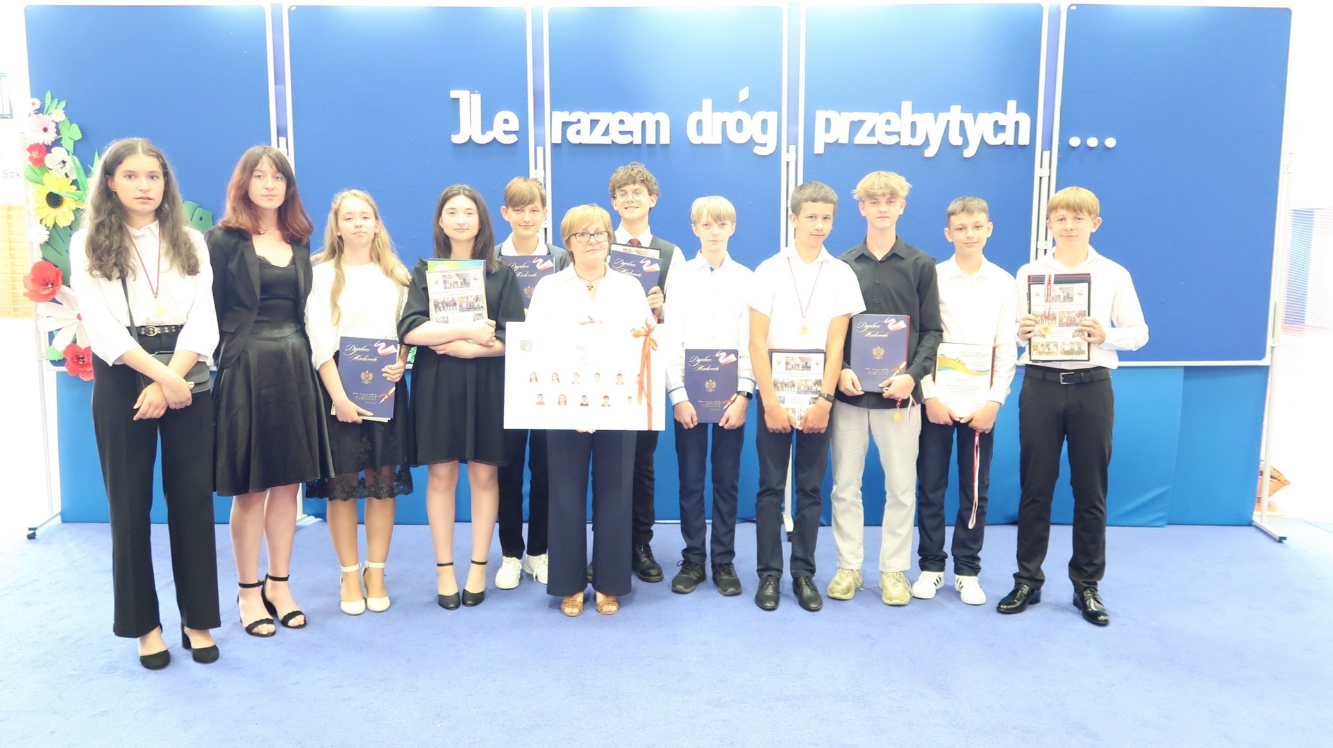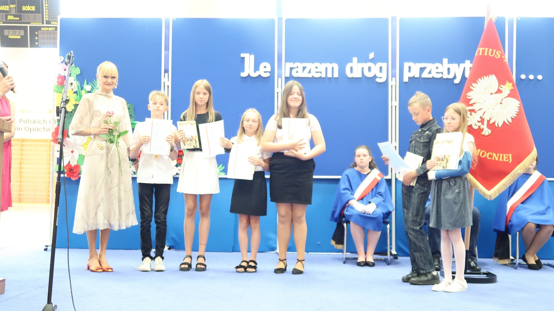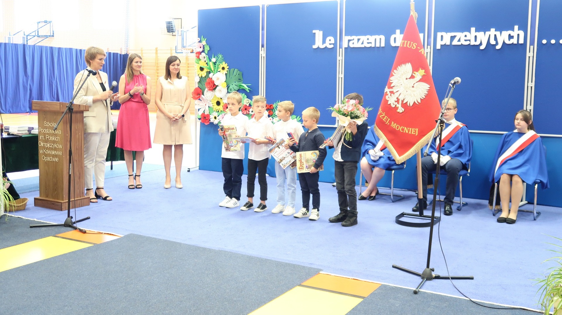 23 czerwca odbyło się w naszej szkole uroczyste zakończenie roku szkolnego oraz pożegnanie Absolwentów naszej szkoły. Tegoroczne wydarzenie rozpoczął niezwykle wzruszający występ klasy VIII przygotowany pod okiem Pani Danuty Król oraz Pani Katarzyny Nowak. Jeszcze raz dziękujemy za wspaniałe wrażenia artystyczne. Najlepszym Absolwentem w roku szkolnym 2022/2023 została Katarzyna Kierkowska, która otrzymała nagrodę Wójta Gminy Słupca. Pragniemy serdecznie pogratulować naszym uczniom klasy VIII oraz życzyć im dalszych sukcesów oraz realizacji marzeń i planów. Podczas naszego zakończenia wręczono wiele nagród w różnych dziedzinach nauki. Szczególnie ważne było wręczenie wyróżnień i podziękowań naszym sportowcom, którzy dzielnie reprezentowali naszą szkołę podczas zawodów w ciągu całego roku szkolnego. Stypendium Wójta Gminy Słupca otrzymała Helena Wróblewska oraz Ignacy Ucinek.